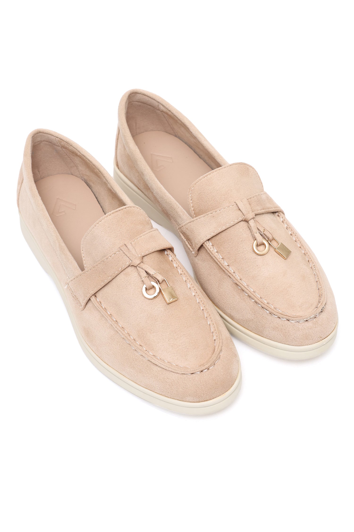 SUEDE LOAFERS WITH GOLDEN CHARM-BEIGE