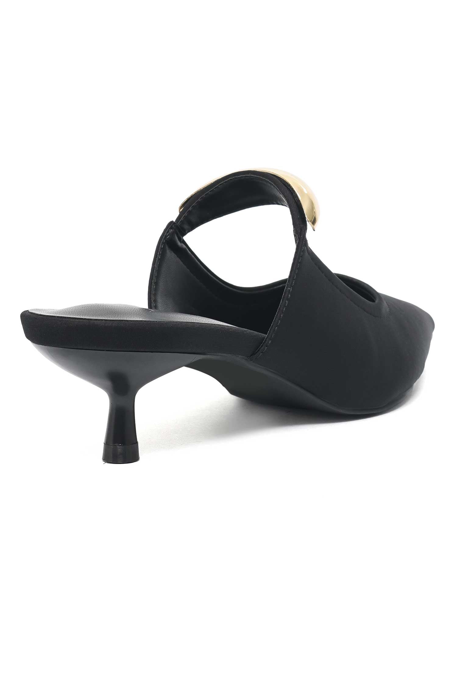 Angular heel construction with structured slingback lines. Minimalist in tone yet rich in detail, ideal for tailored dressing. Elevates silhouettes with sharp precision.