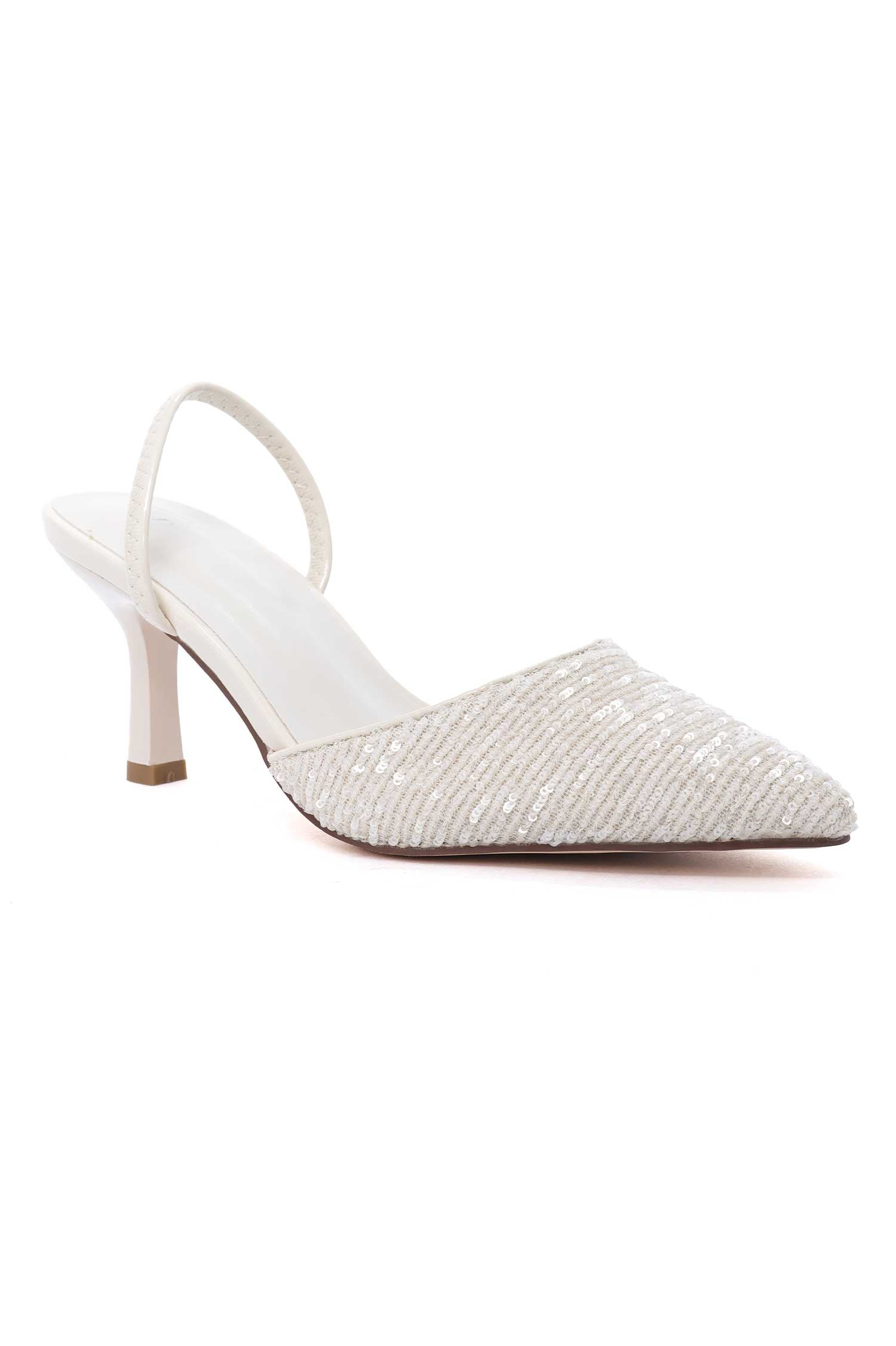 Sequined texture catches the light in every step, offering rich luster. the structured slingback design supports comfort and flair. wear it to shimmer with ease.