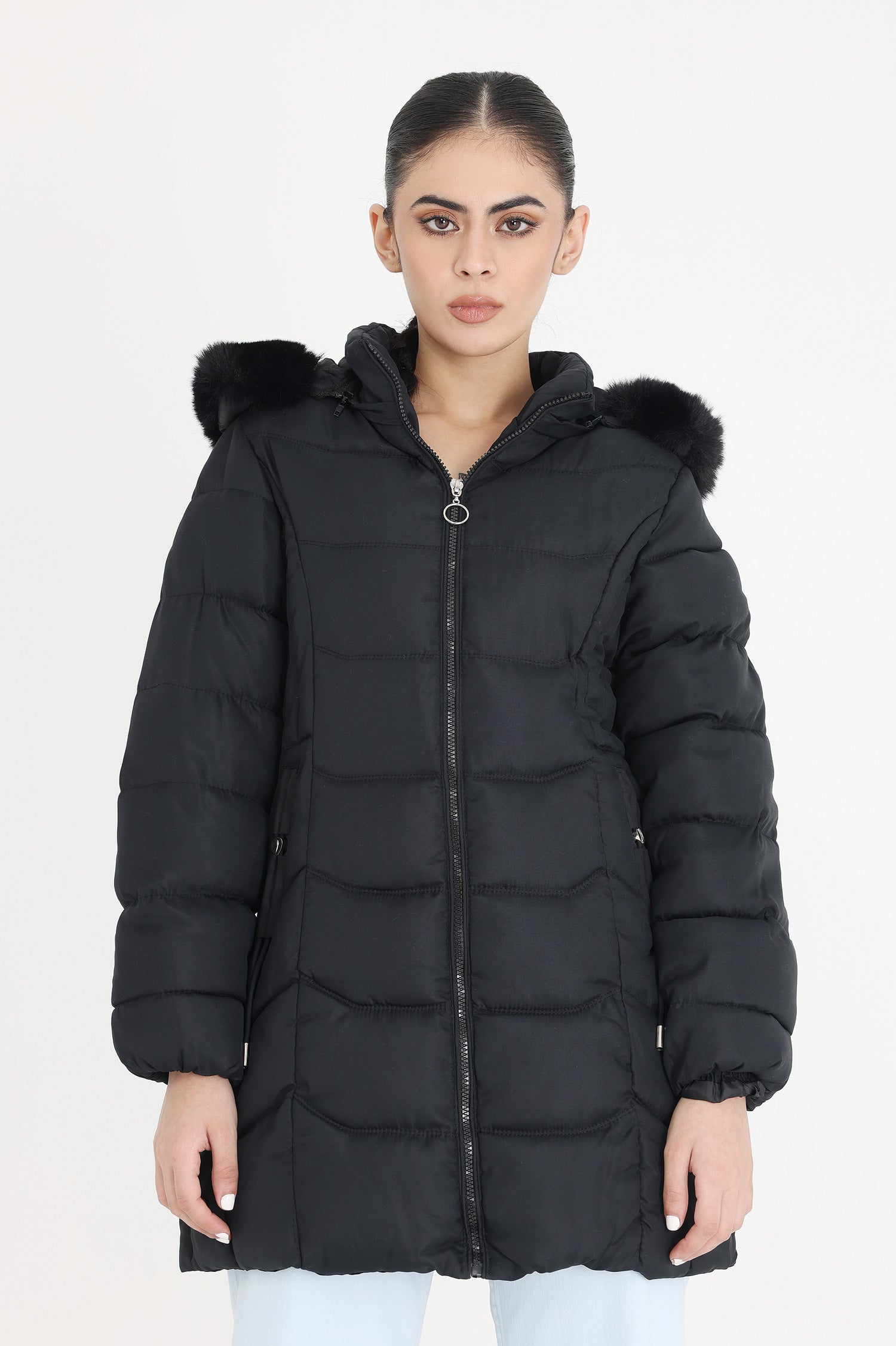 Stay warm and stylish with the "Reversible Puff Lux Long Jacket" by Almas. Puffer jacket features a hood with luxurious fur details that not only keep you cozy but also add a touch of elegance to your look. With a warm and comfortable interior.