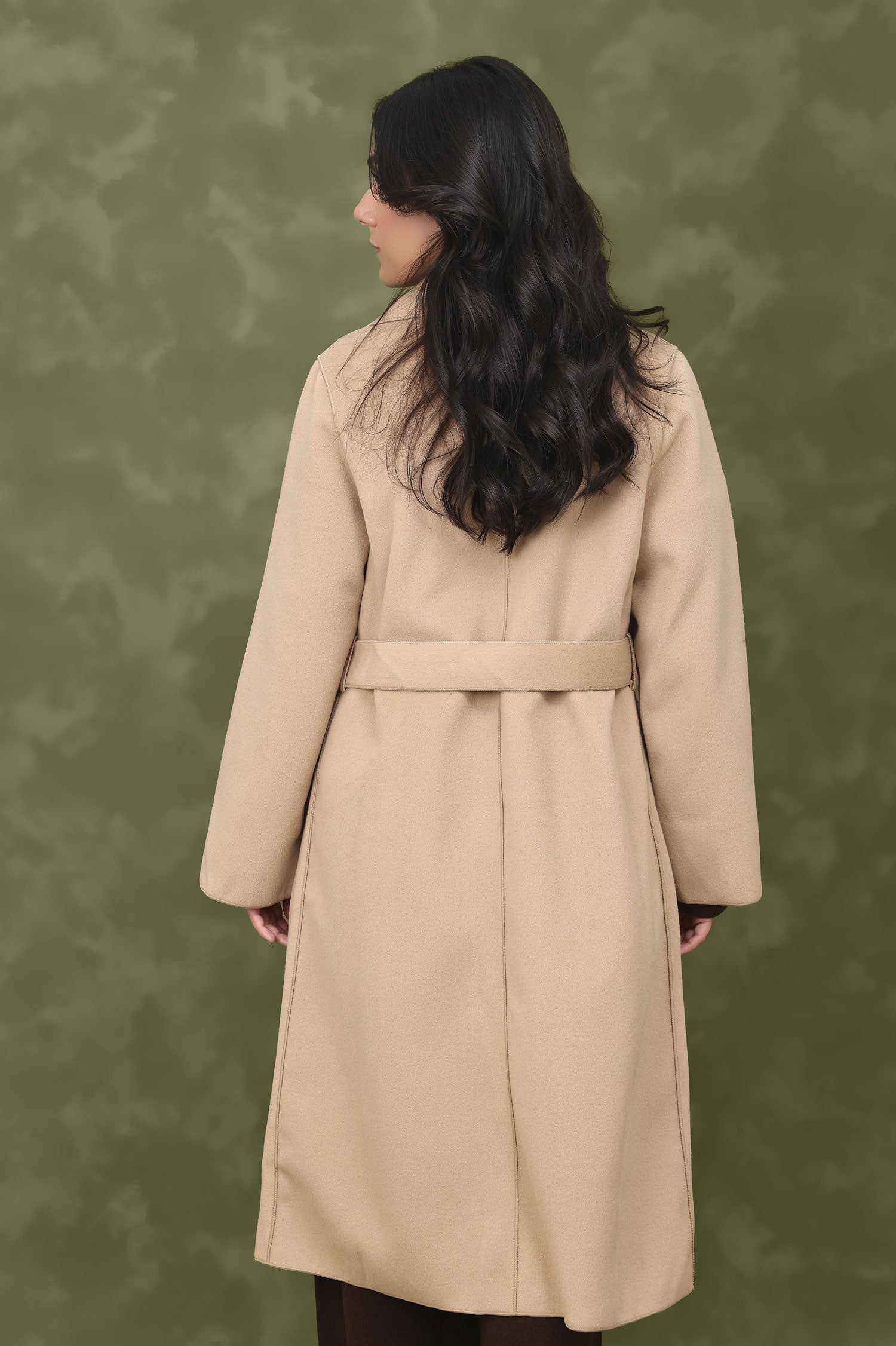 This classic wool-blend trench coat is a must-have for cold-weather styling. The minimalistic design, belted waist, and structured lapels create a polished look, while the soft wool-blend fabric ensures lasting comfort.
