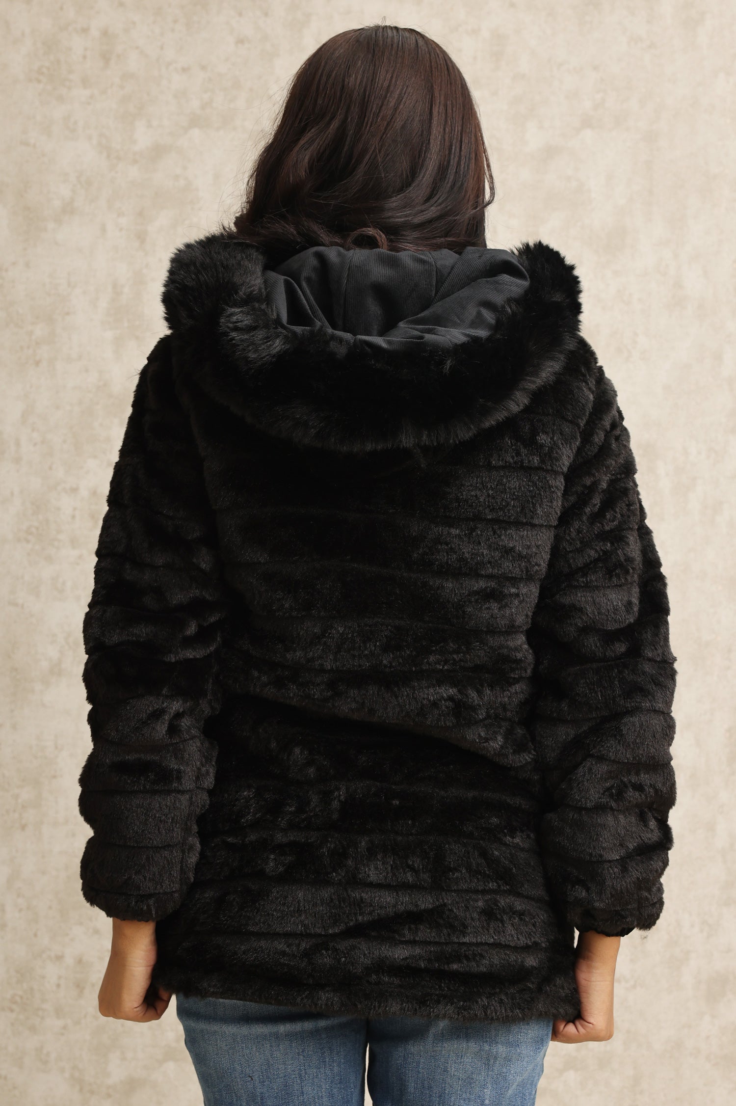 This reversible jacket combines a plush side for ultimate coziness and a corduroy side for a polished finish. Crafted with premium materials, it features a zip-up closure, adjustable hood, and elasticated cuffs for a snug fit. Designed for warmth and versatility, it’s perfect for effortless layering on colder days.