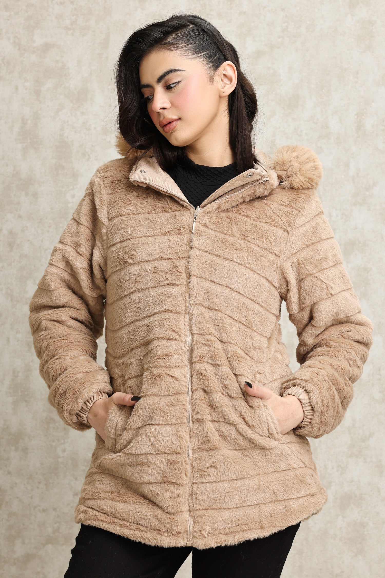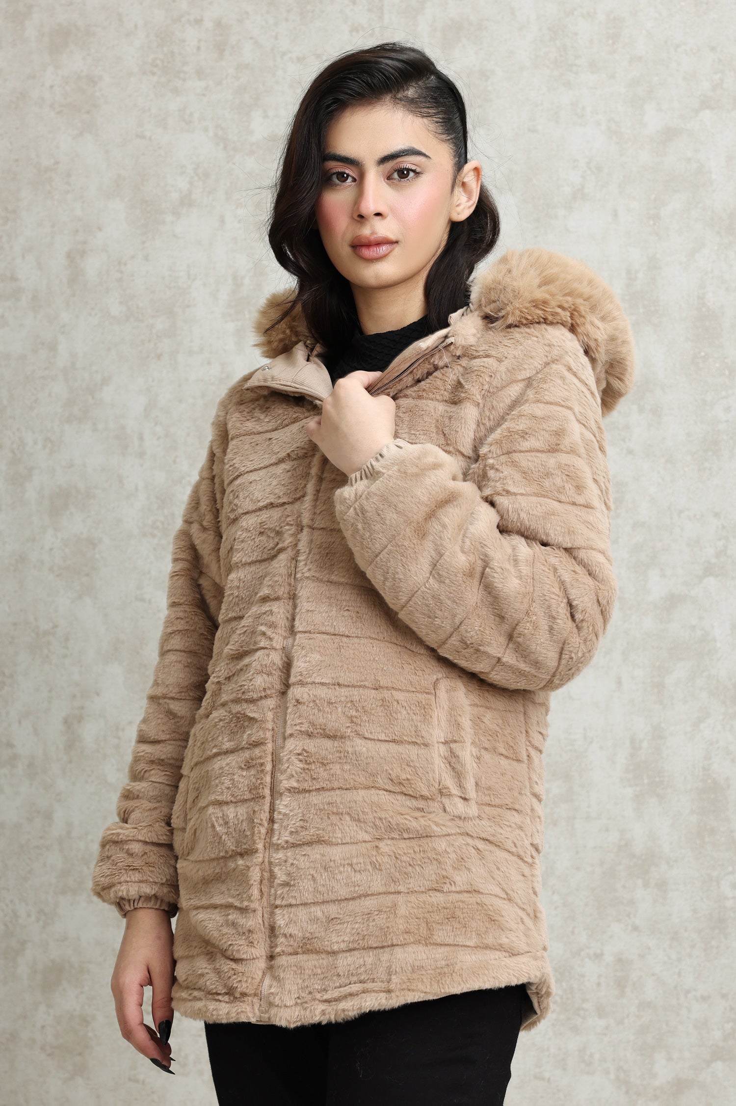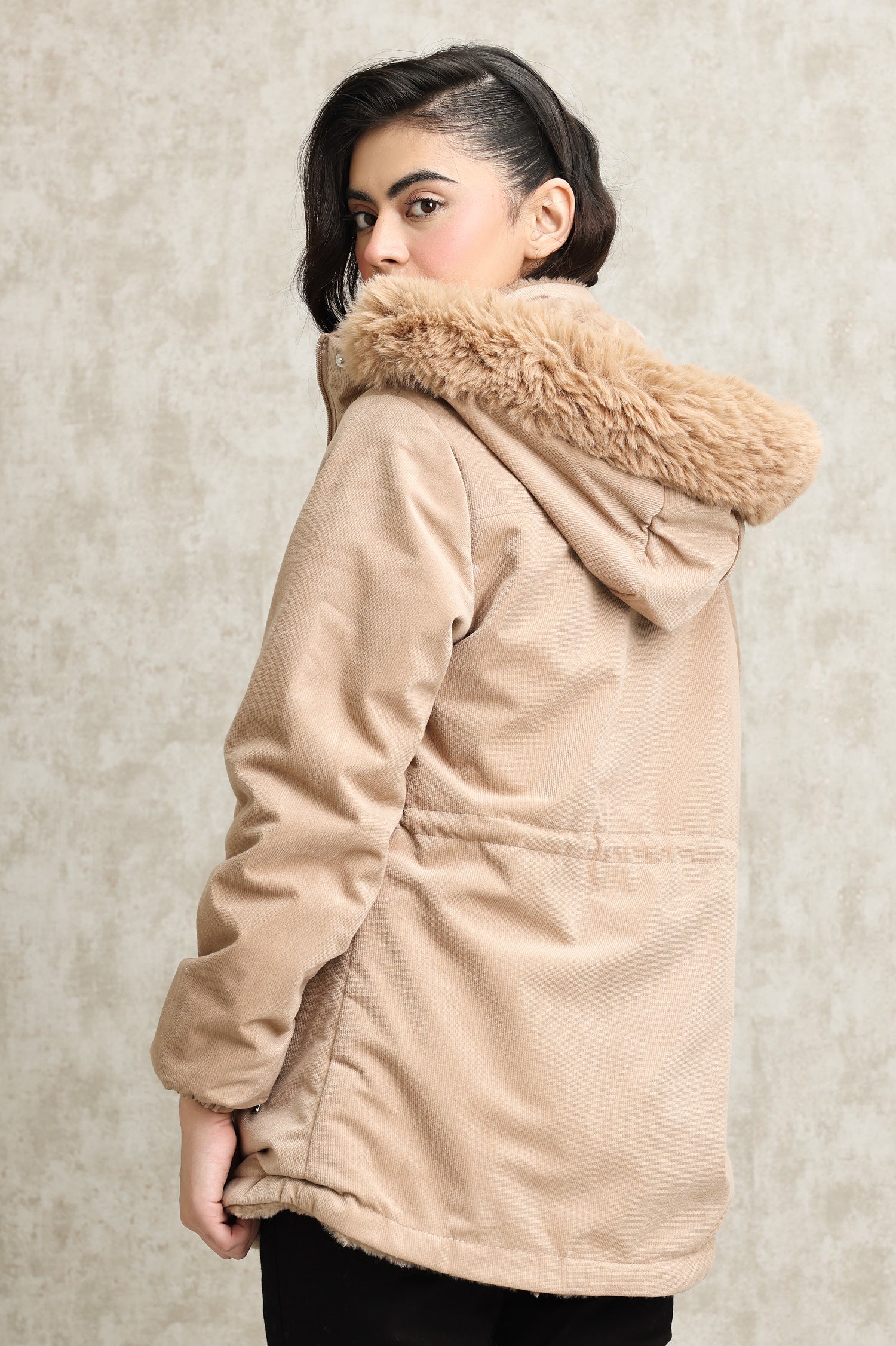 This reversible jacket combines a plush side for ultimate coziness and a corduroy side for a polished finish. Crafted with premium materials, it features a zip-up closure, adjustable hood, and elasticated cuffs for a snug fit. Designed for warmth and versatility, it’s perfect for effortless layering on colder days.