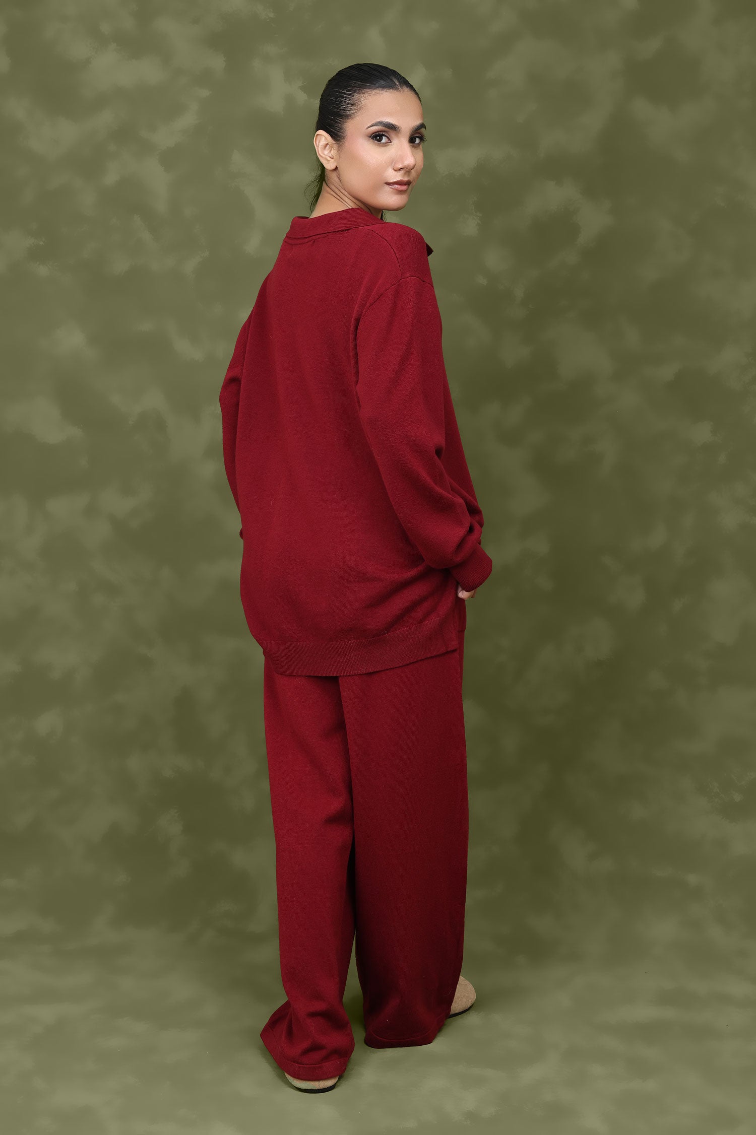 RELAX SCULPTED CO-ORD SET-WINE/RED
