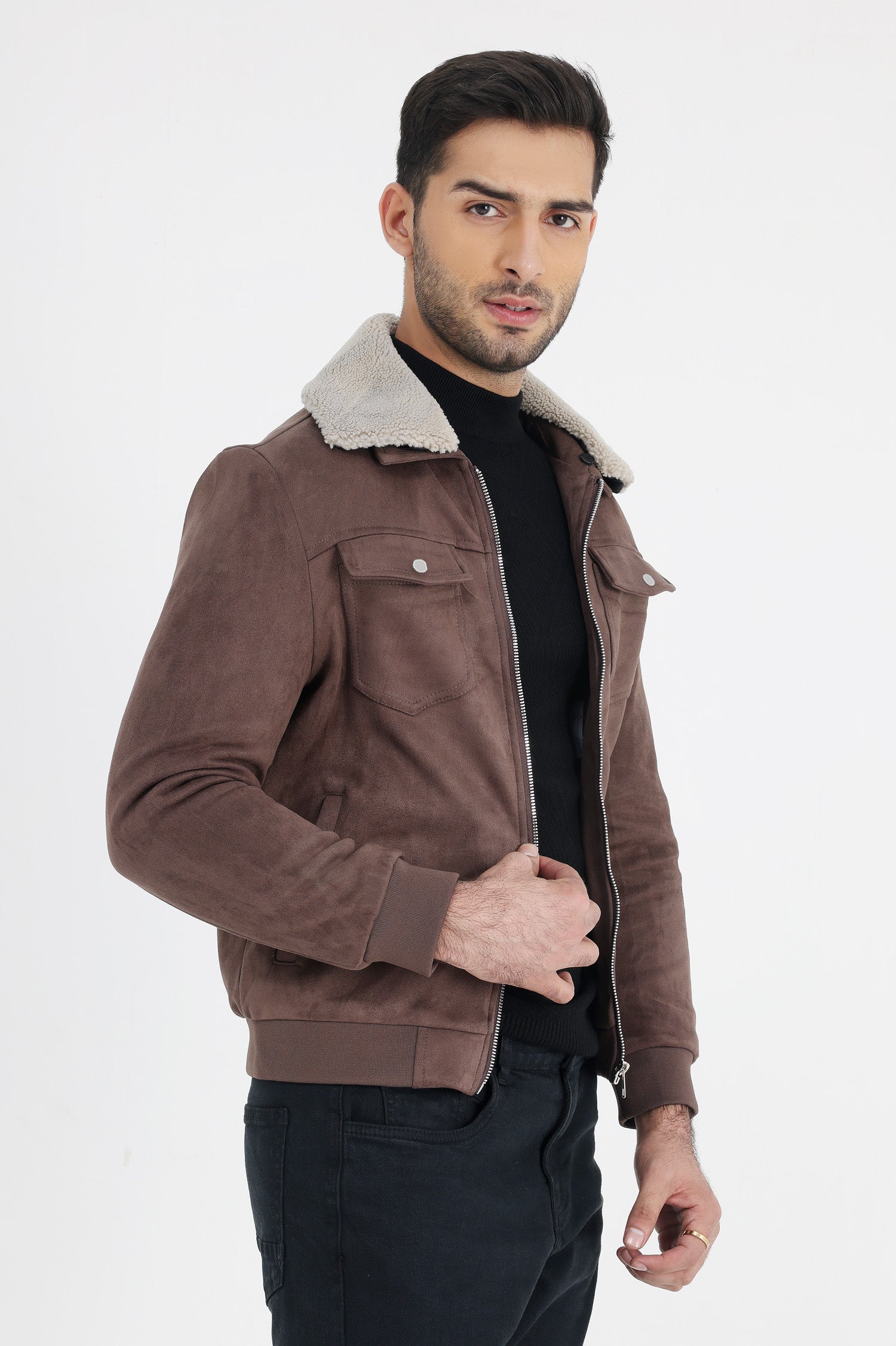 Elevate your winter style with the Almas Urban Suede Jacket featuring a luxurious fur collar design. This jacket combines the timeless elegance of suede with modern accents. With its practical pockets and stylish detailing, it's the perfect choice for those seeking a blend of fashion and functionality.