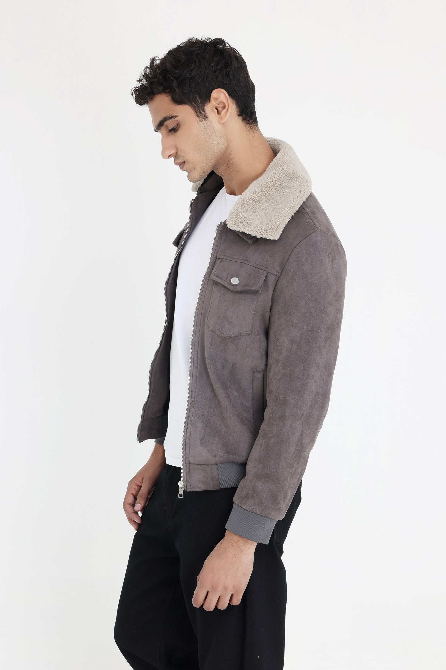 ALMAS URBAN SUEDE JACKET WITH FUR COLLAR-GREY