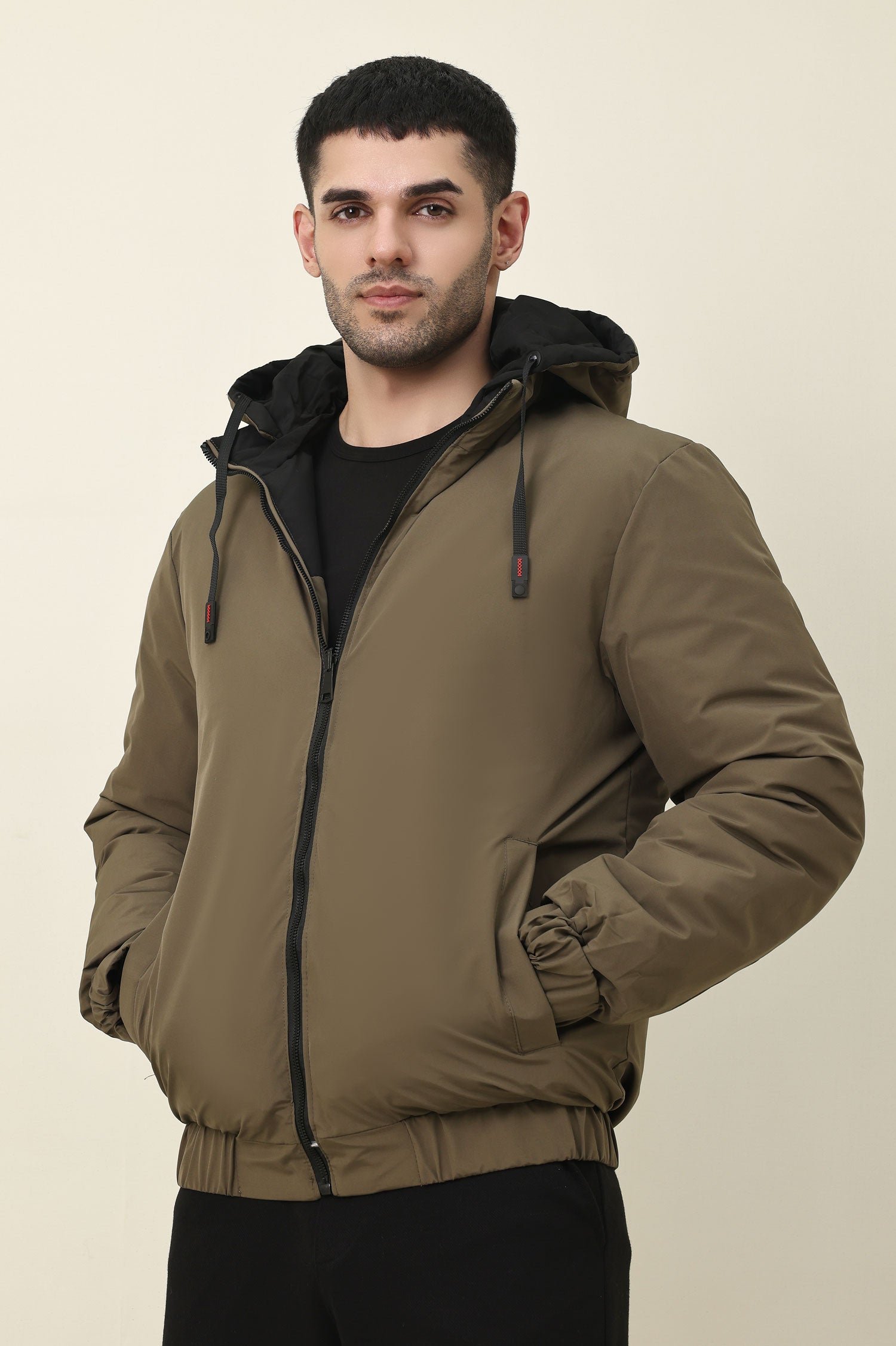 Designed with a color block yoke and high-puff silhouette, this jacket features a structured hood and adjustable toggles. Crafted for superior insulation with lightweight quilted construction. A practical winter layer with a sporty yet tailored look.