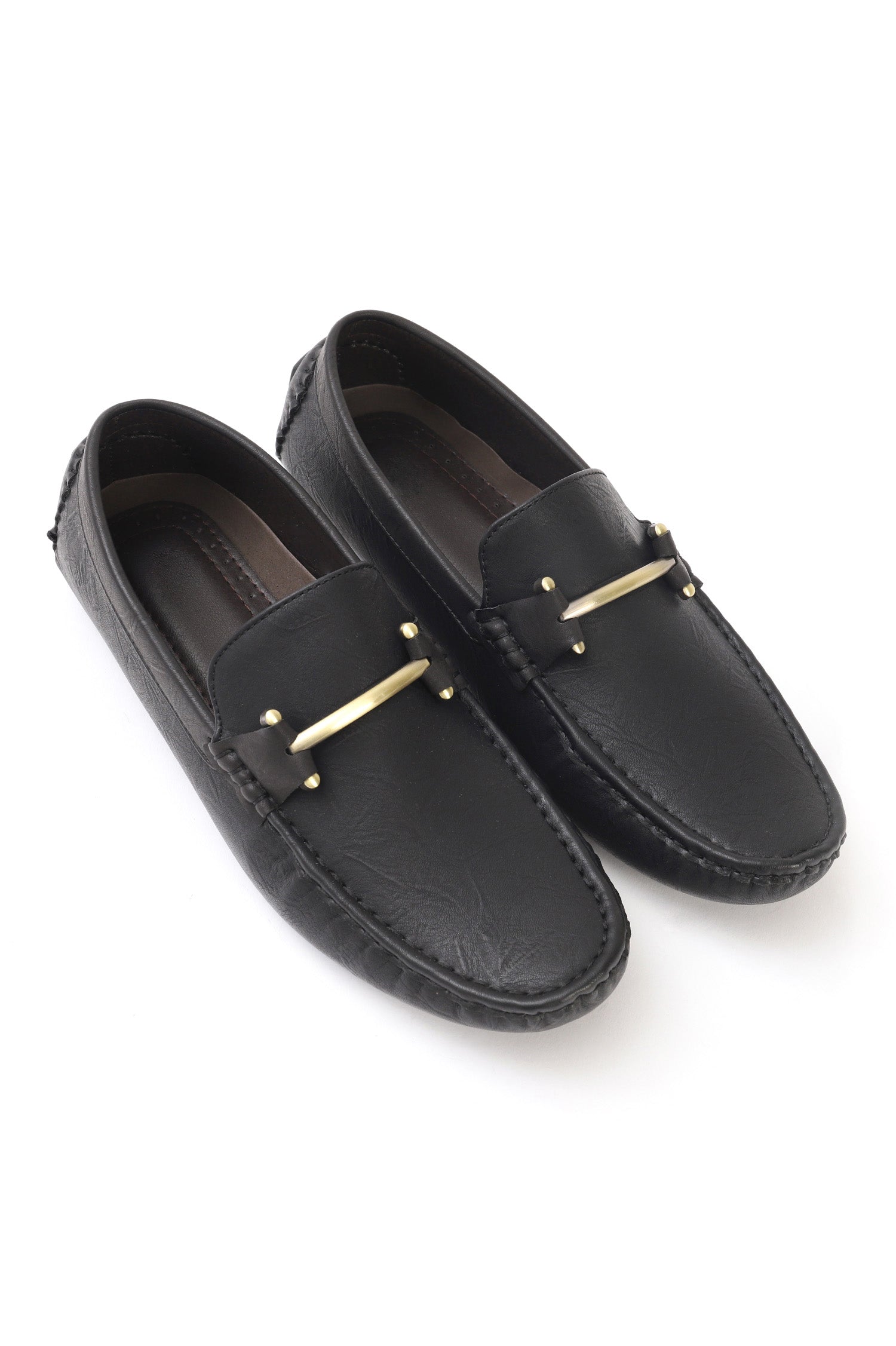 Signature moc stitch with a bold metallic centerpiece. Soft padding ensures all-day ease. Made for movement with sartorial flair.