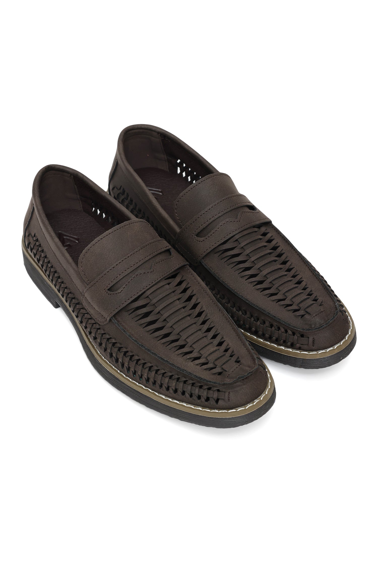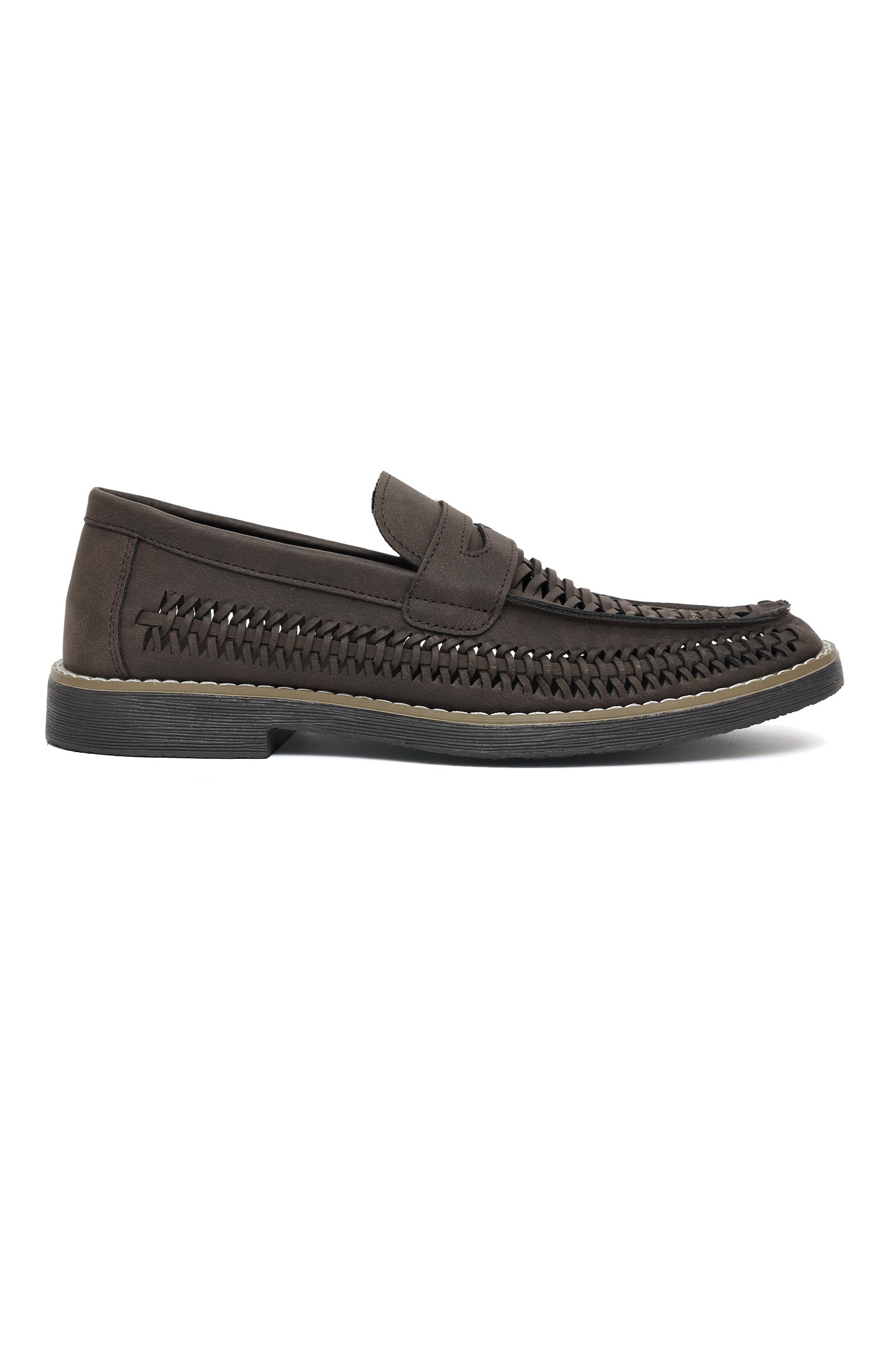 WOVEN LEATHER LOAFERS-COFFEE
