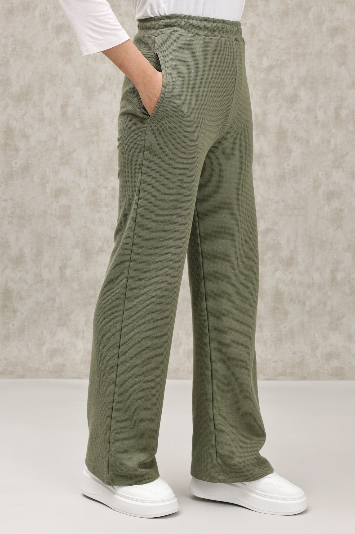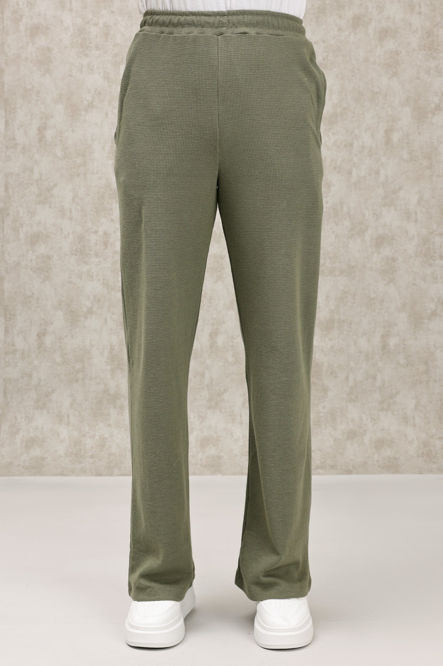 Experience unmatched comfort with these ribbed straight-leg lounge trousers. Designed with a textured ribbed fabric, they offer a perfect blend of style and relaxation. The elasticated waistband ensures a secure fit, while the straight-leg silhouette adds a touch of sophistication. Ideal for casual outings or relaxing at home, these trousers pair effortlessly with sneakers for a versatile, laid-back appeal.