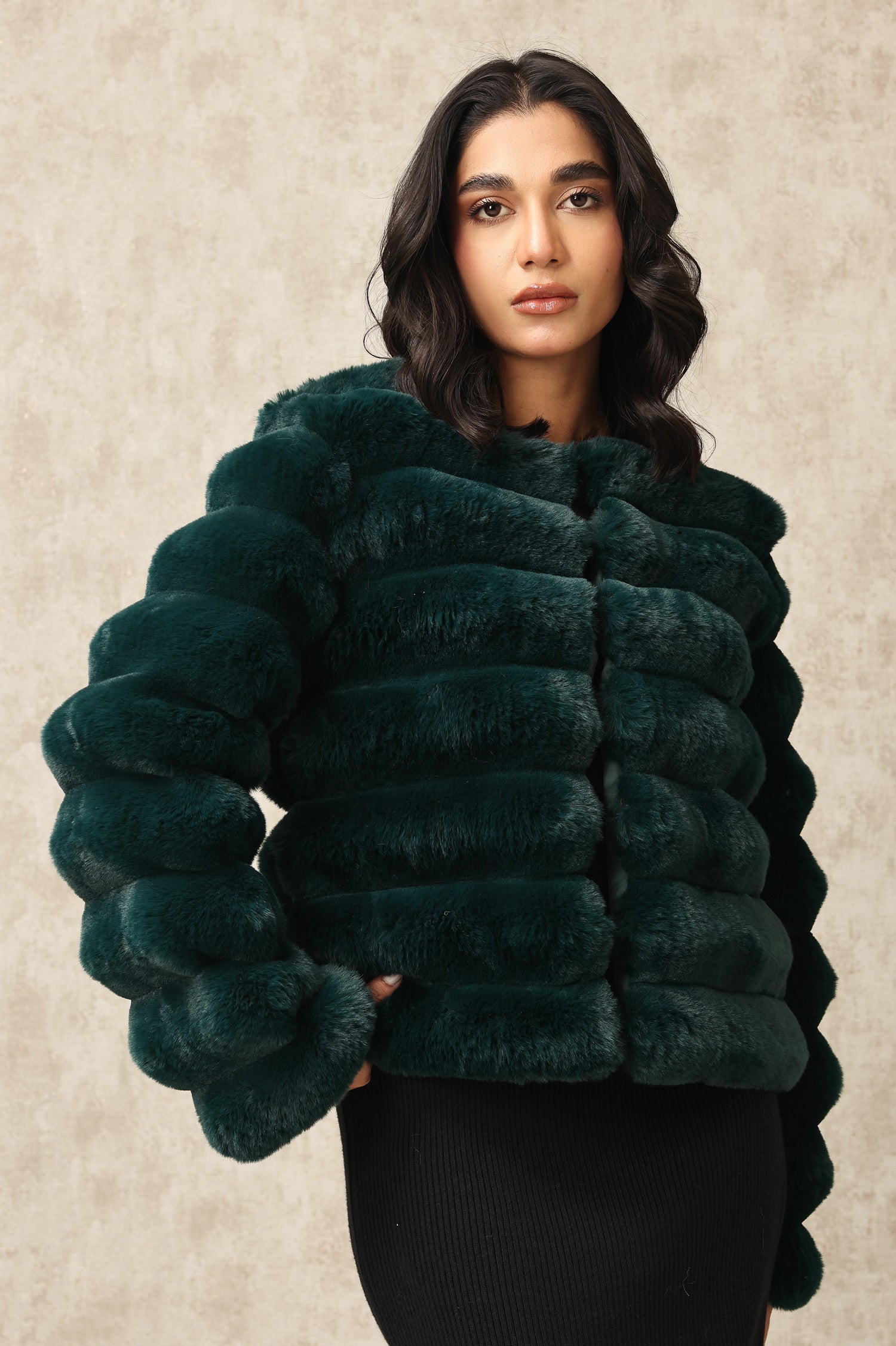 crafted with meticulous attention to detail, this faux fur jacket showcases a structured silhouette with plush texture. designed for statement-making elegance, it offers both luxurious warmth and refined style for modern sophistication.