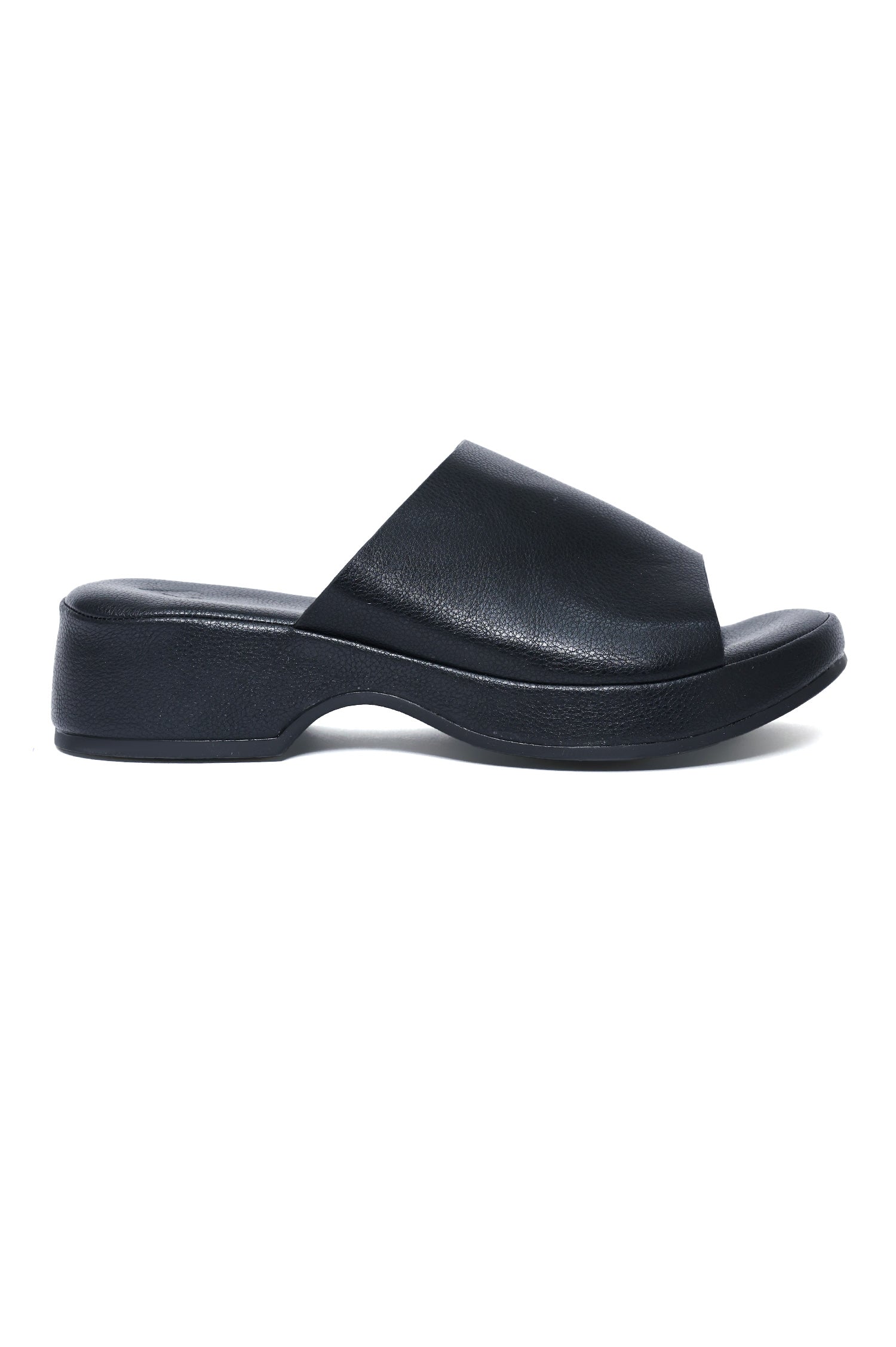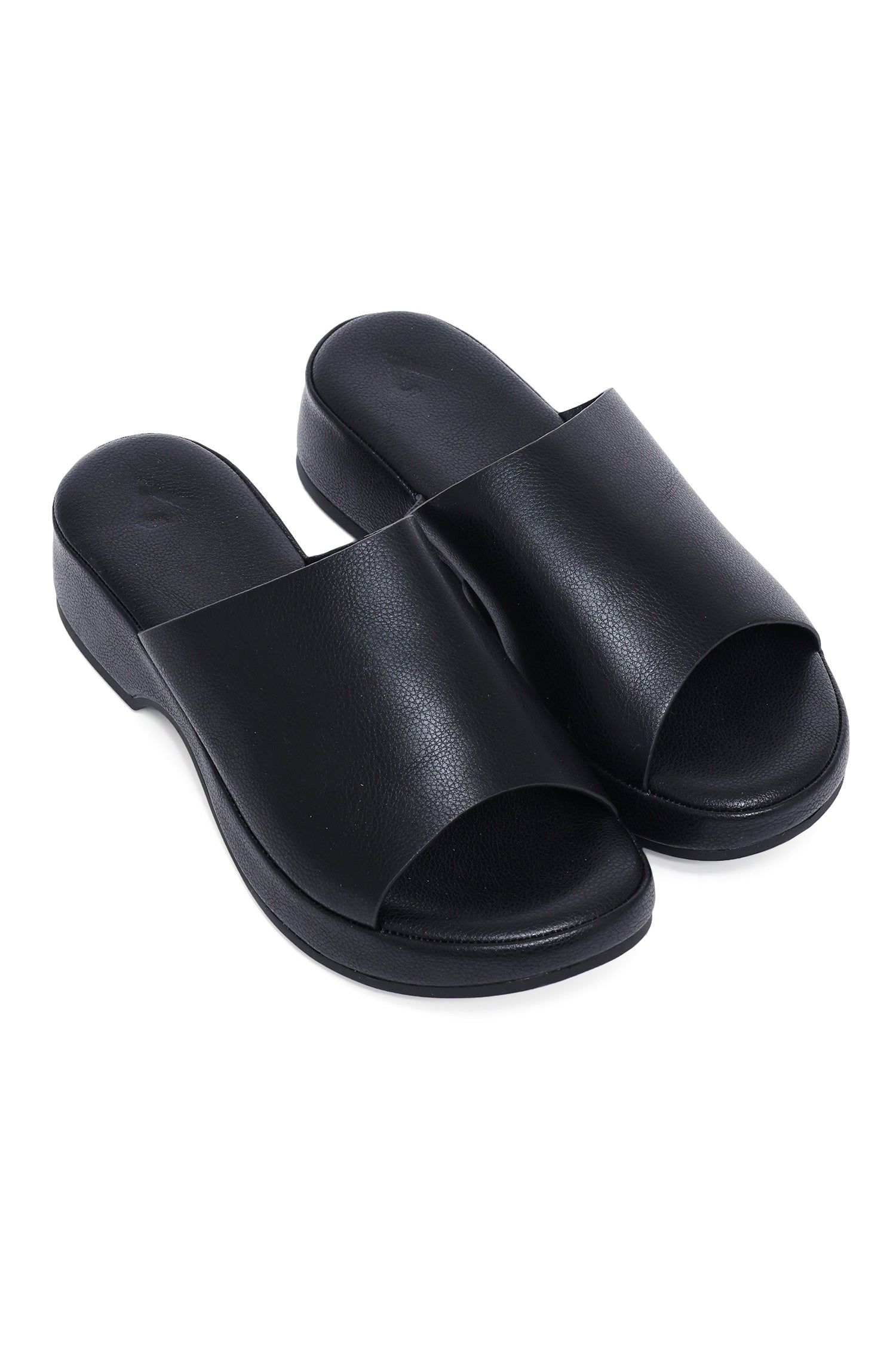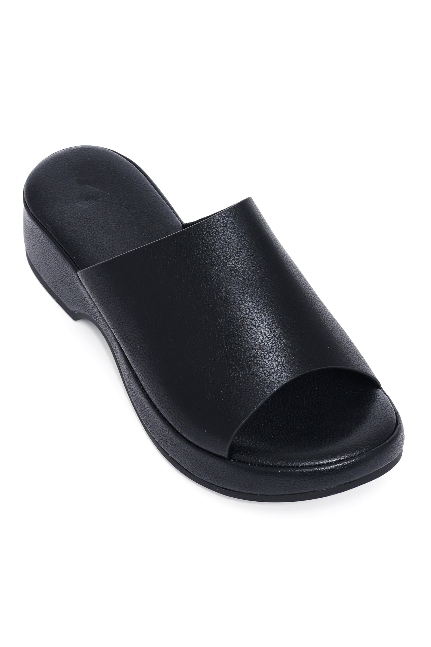 ELEGANT OPEN-TOE WEDGE SLIDE-BLACK