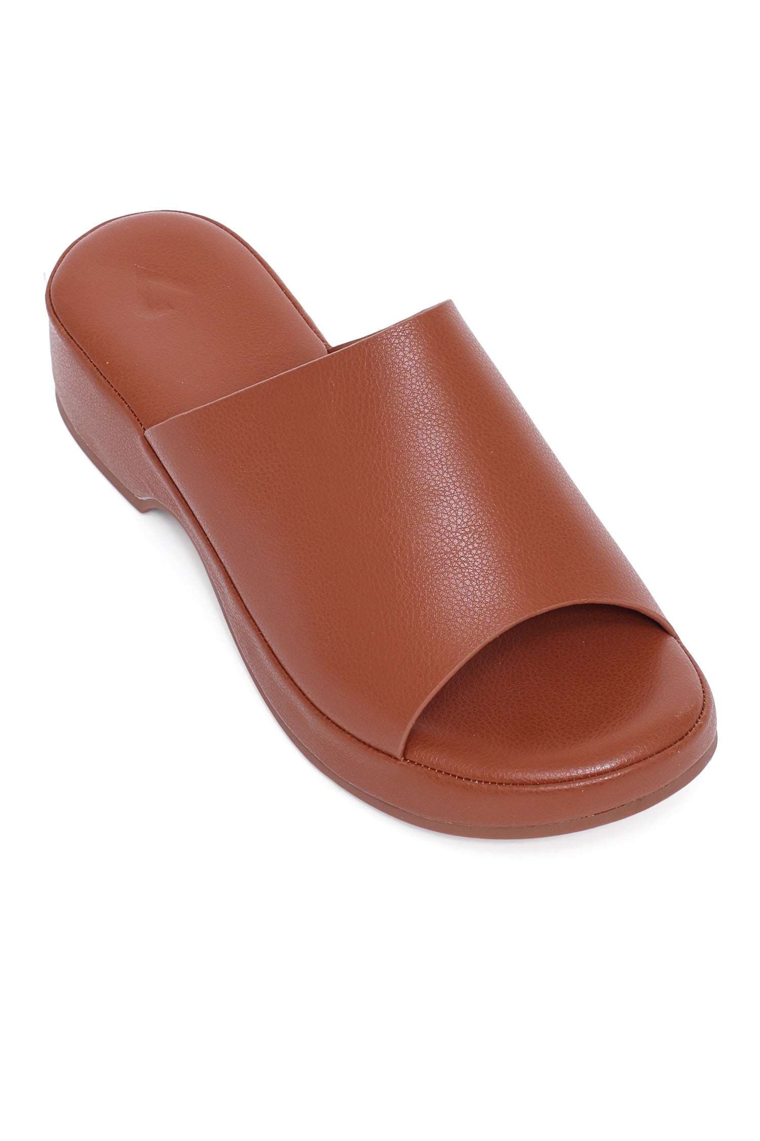 ELEGANT OPEN-TOE WEDGE SLIDE-CAMEL