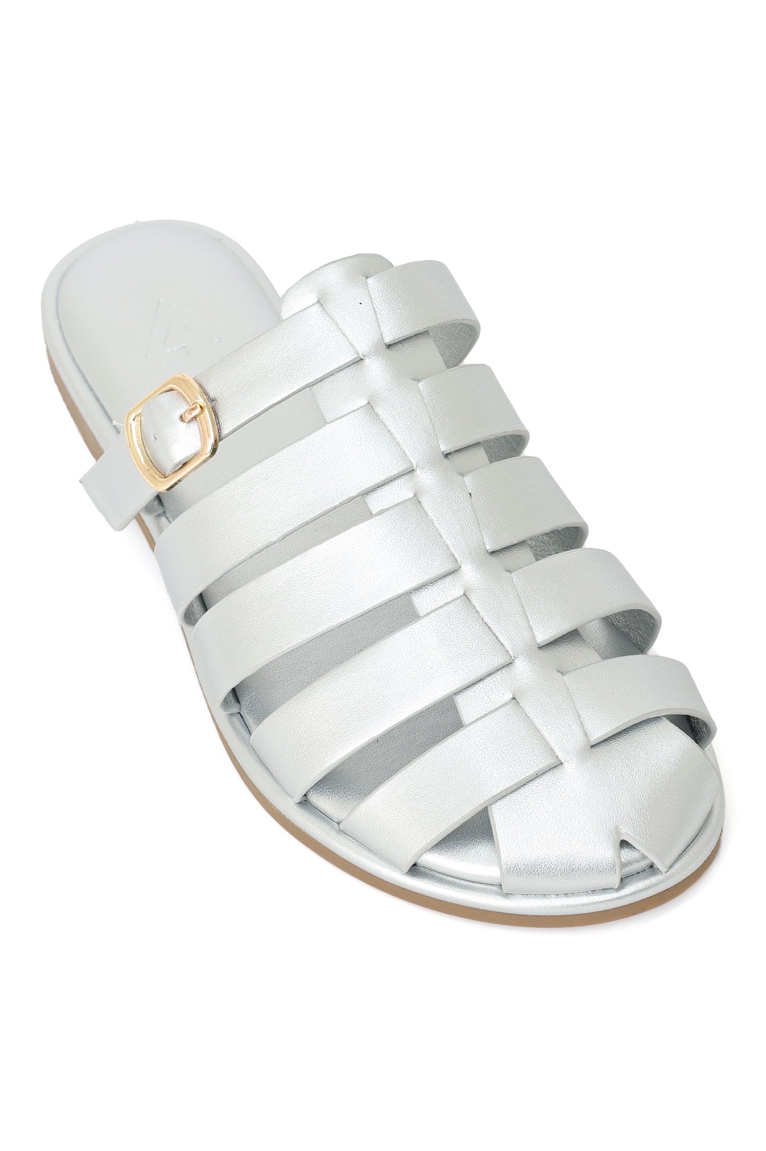 Elevate your off-duty wardrobe with these cage-strap mules, designed in luxe faux leather with a soft cushioned sole. The intricate weave and buckle accent channel understated elegance while offering secure all-day wear. Ideal for strolls, brunches, or laid-back summer styling.