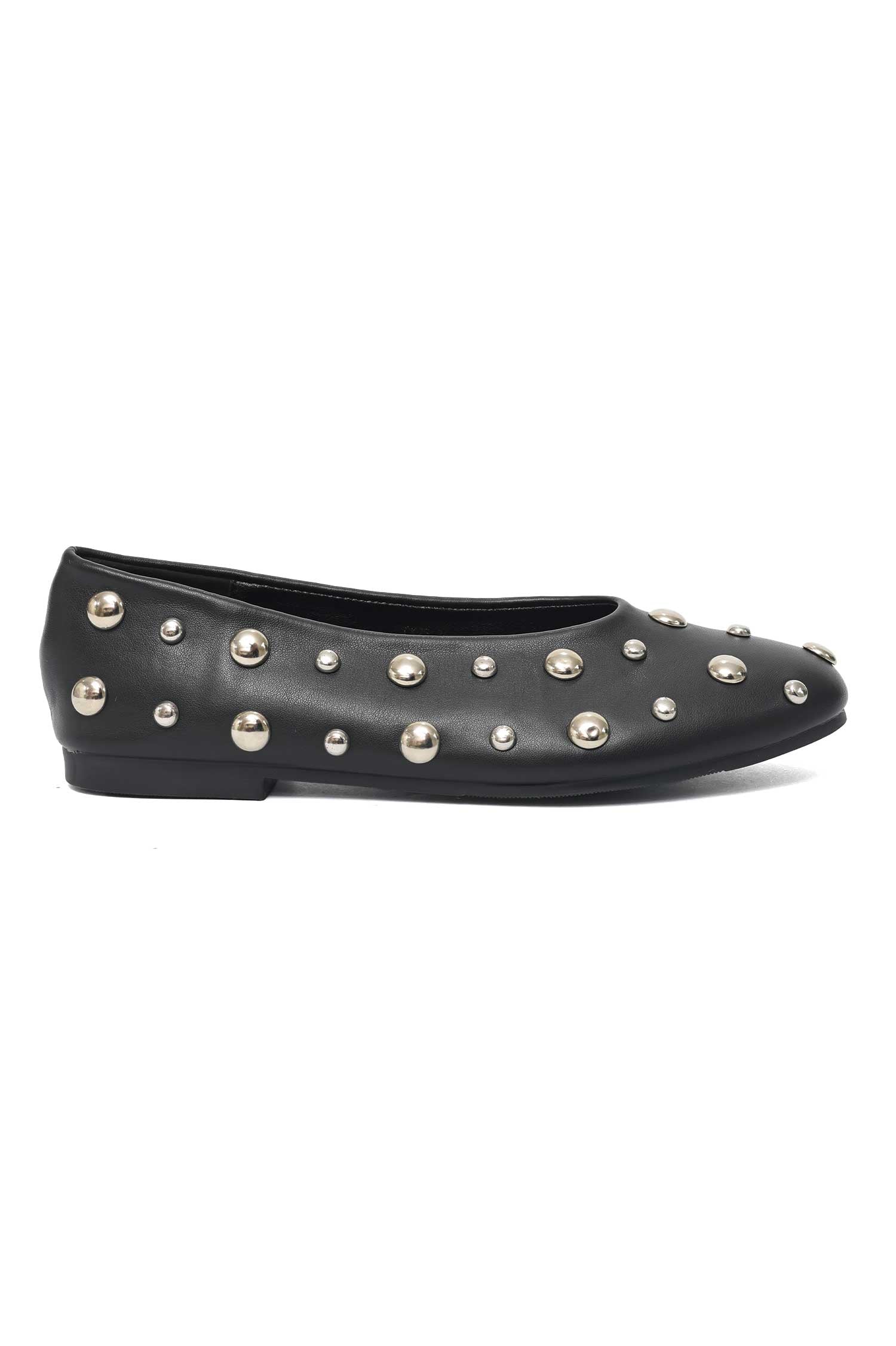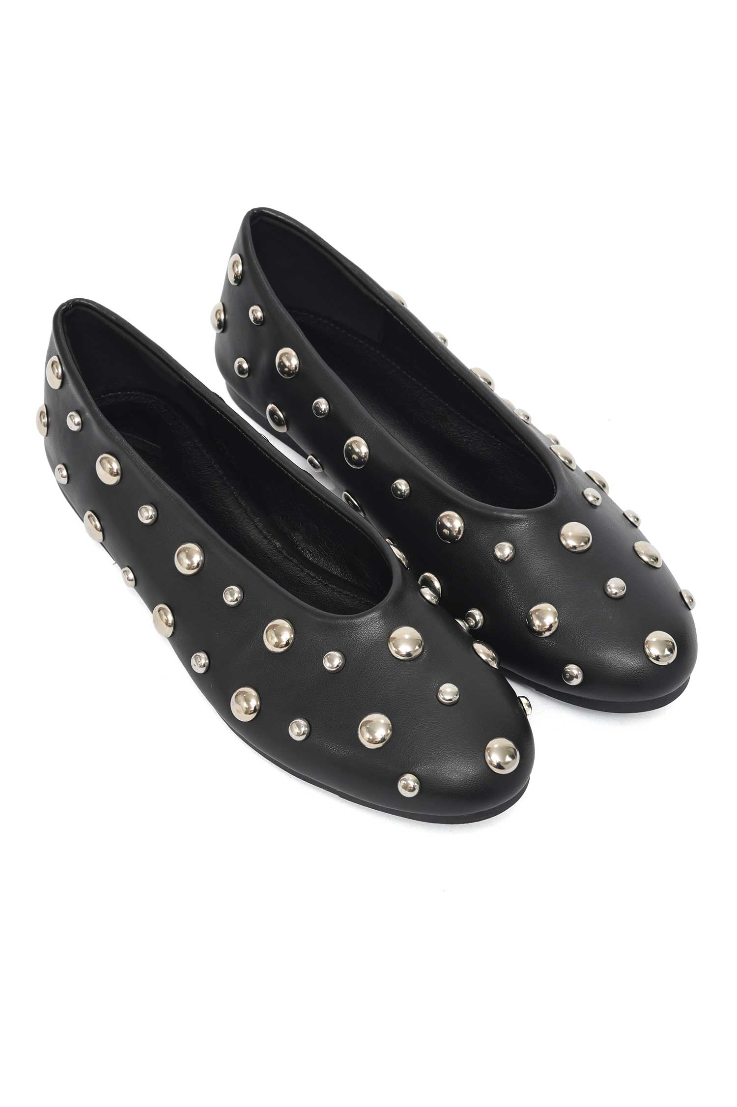 Rounded ballet structure meets all-over stud shine in this bold silhouette.