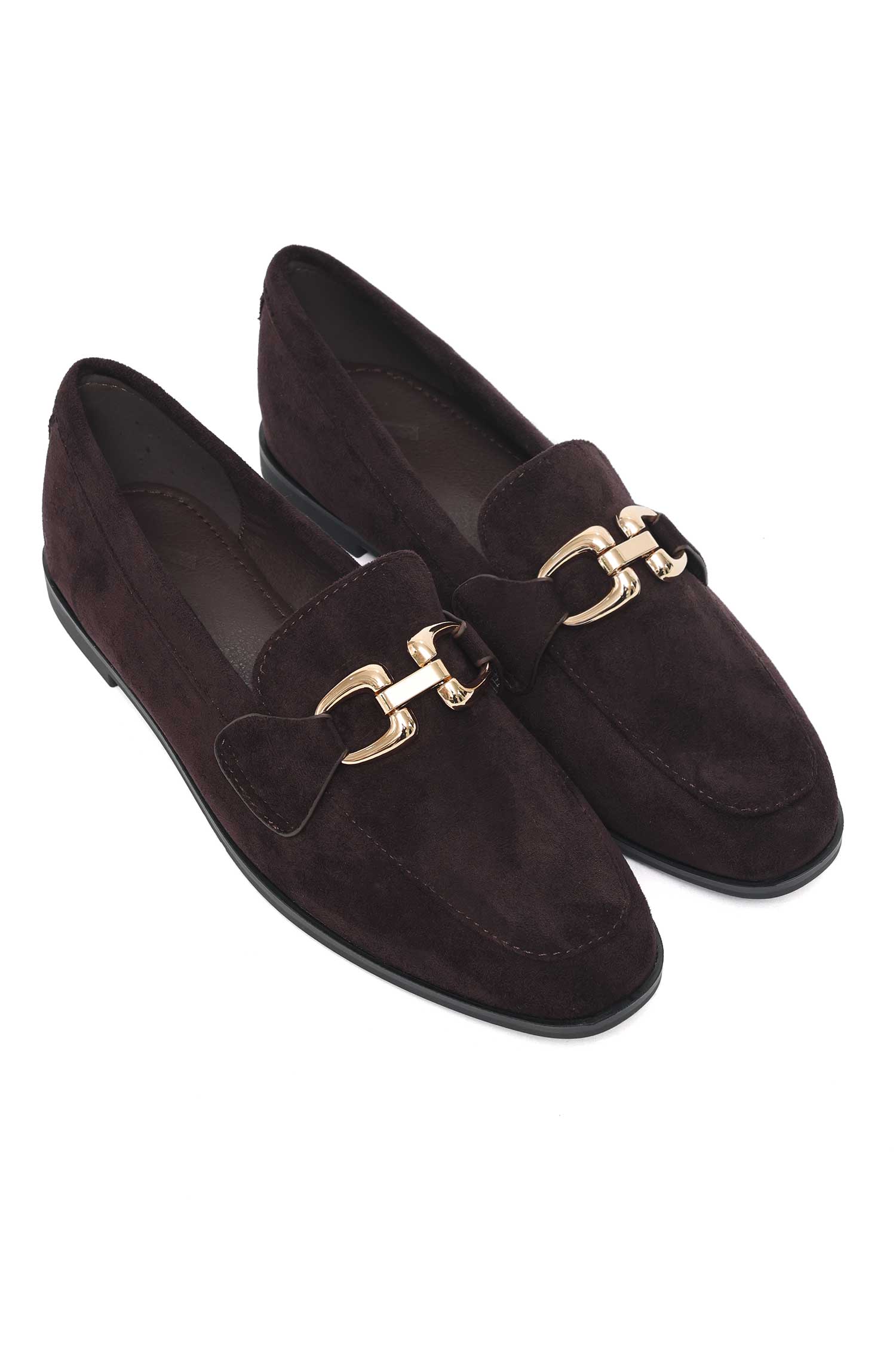A gleaming metal buckle sits atop the vamp for a touch of understated luxury.