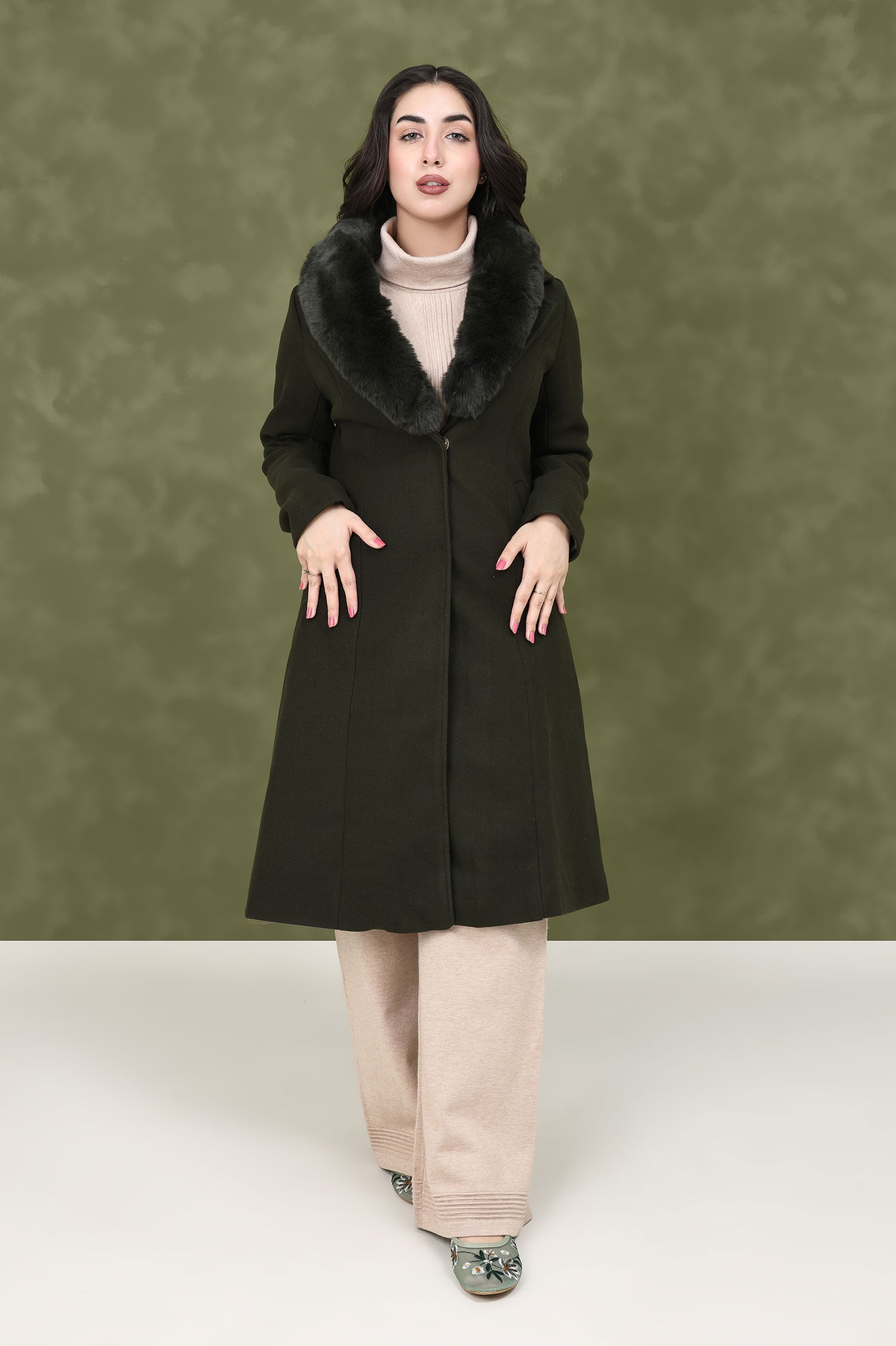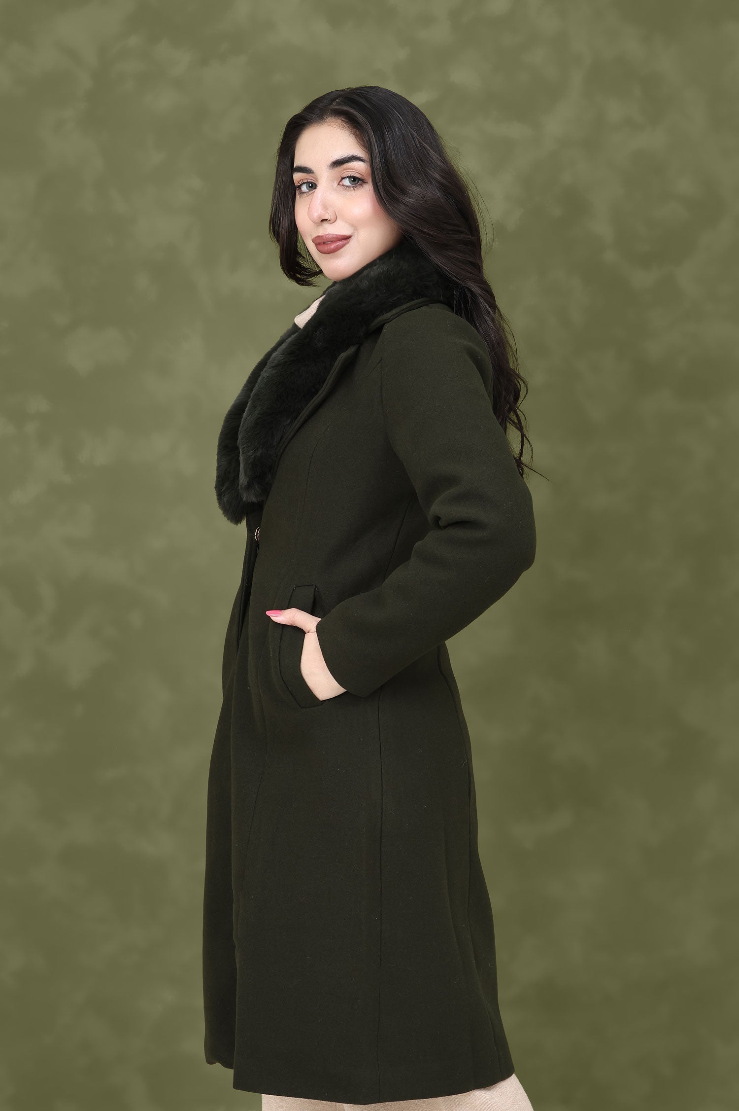 FAUX FUR COLLAR OVERCOAT-DK/OLIVE