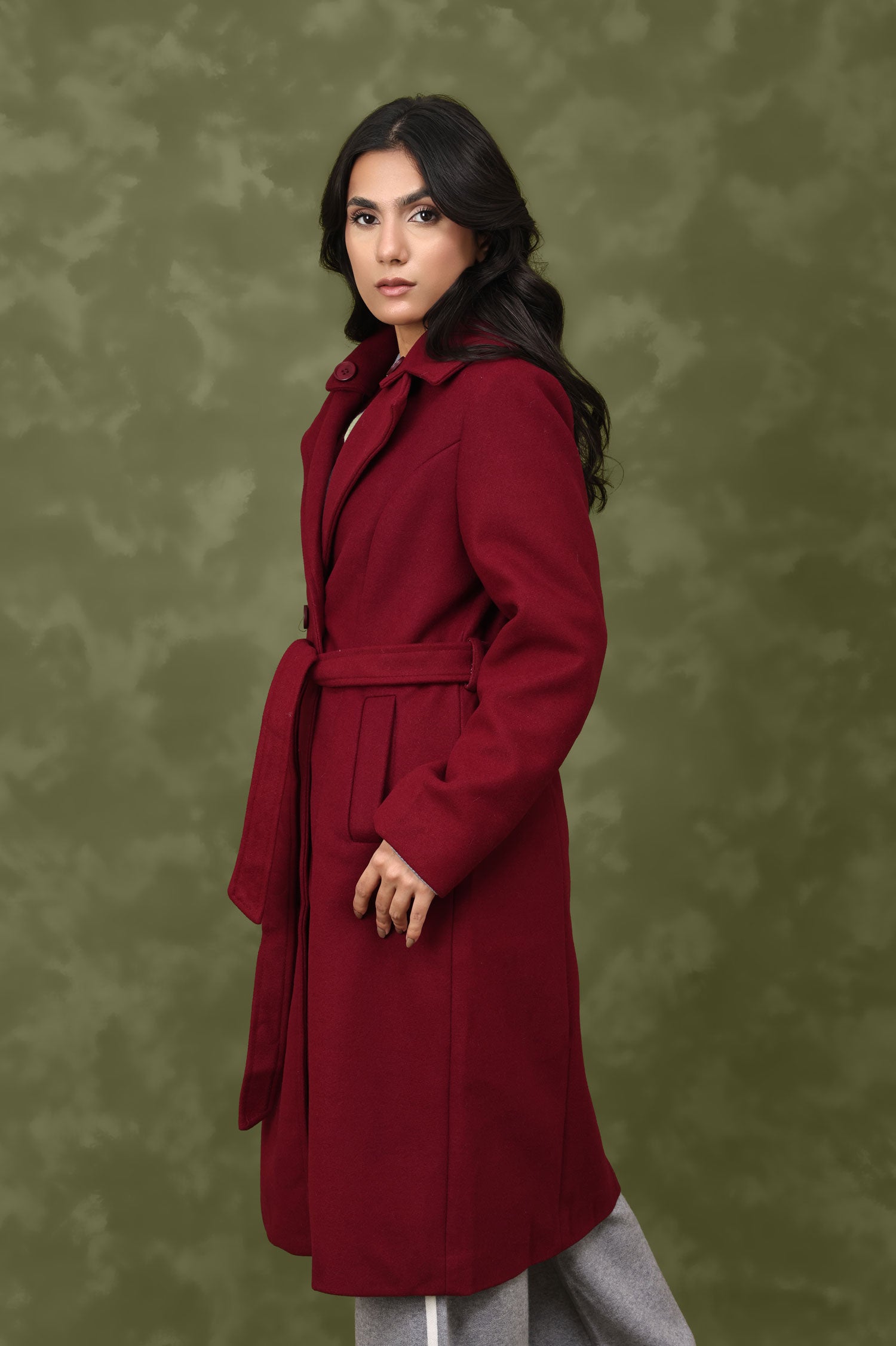 DOUBLE-BREASTED WOOL BLEND OVERCOAT-WINE