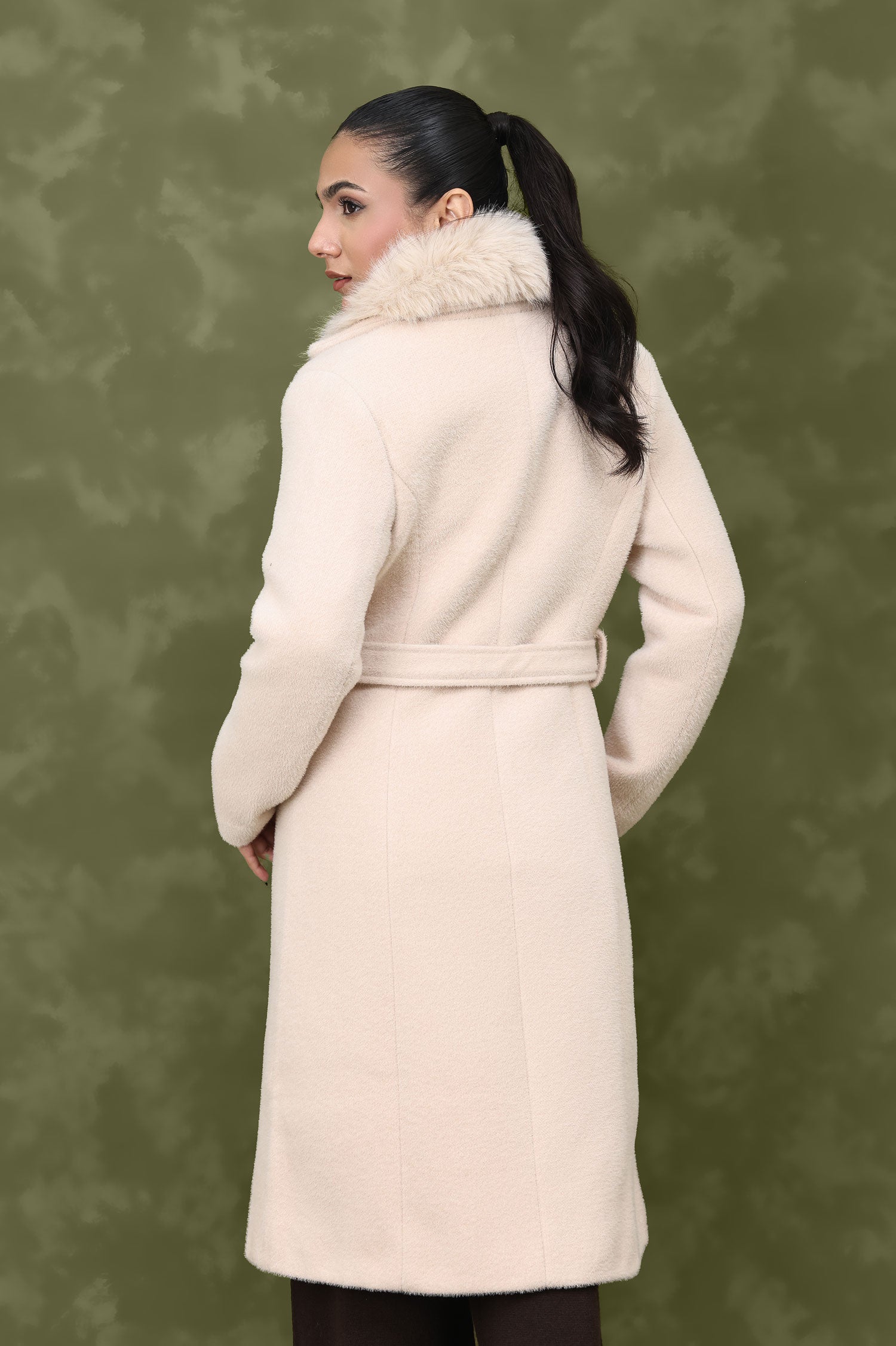 ELEGANT PLUSH COLLAR COAT-BEIGE