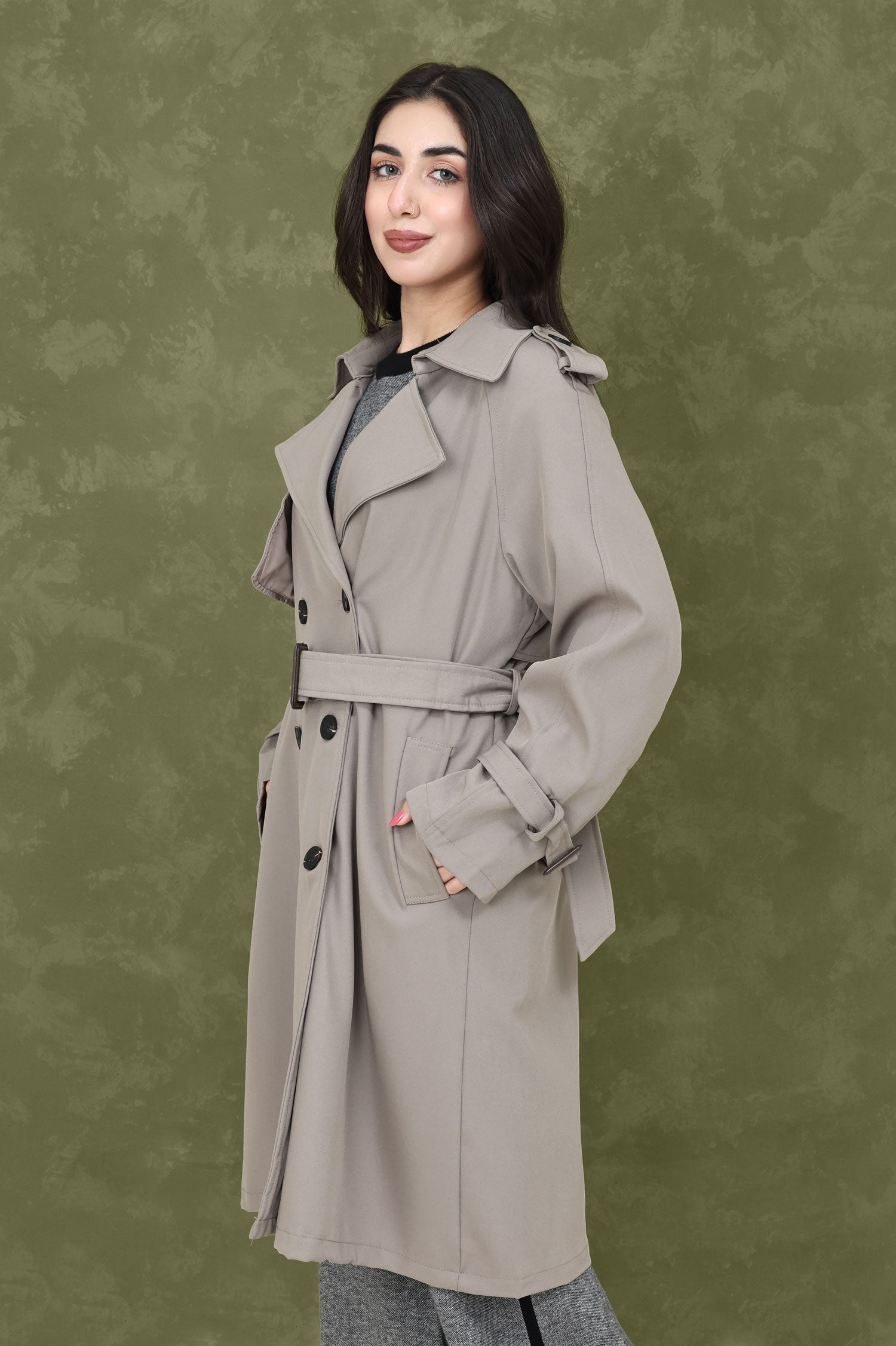 BELTED D-RING COAT-KHAKI