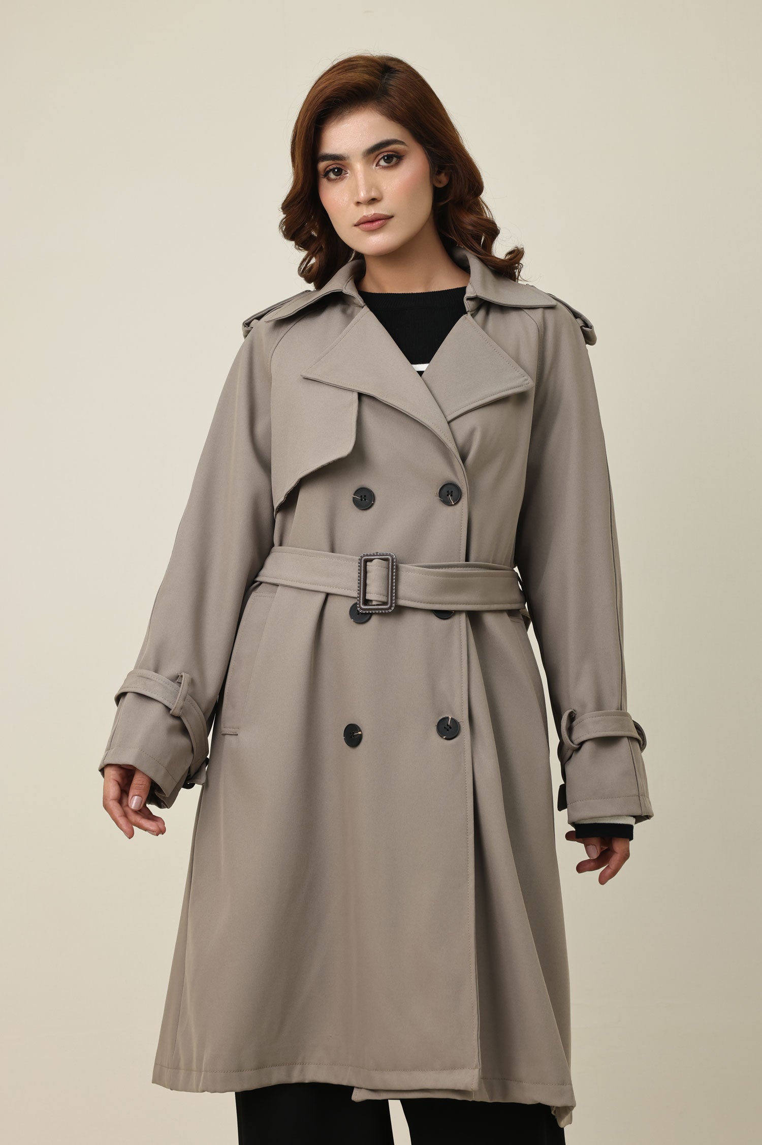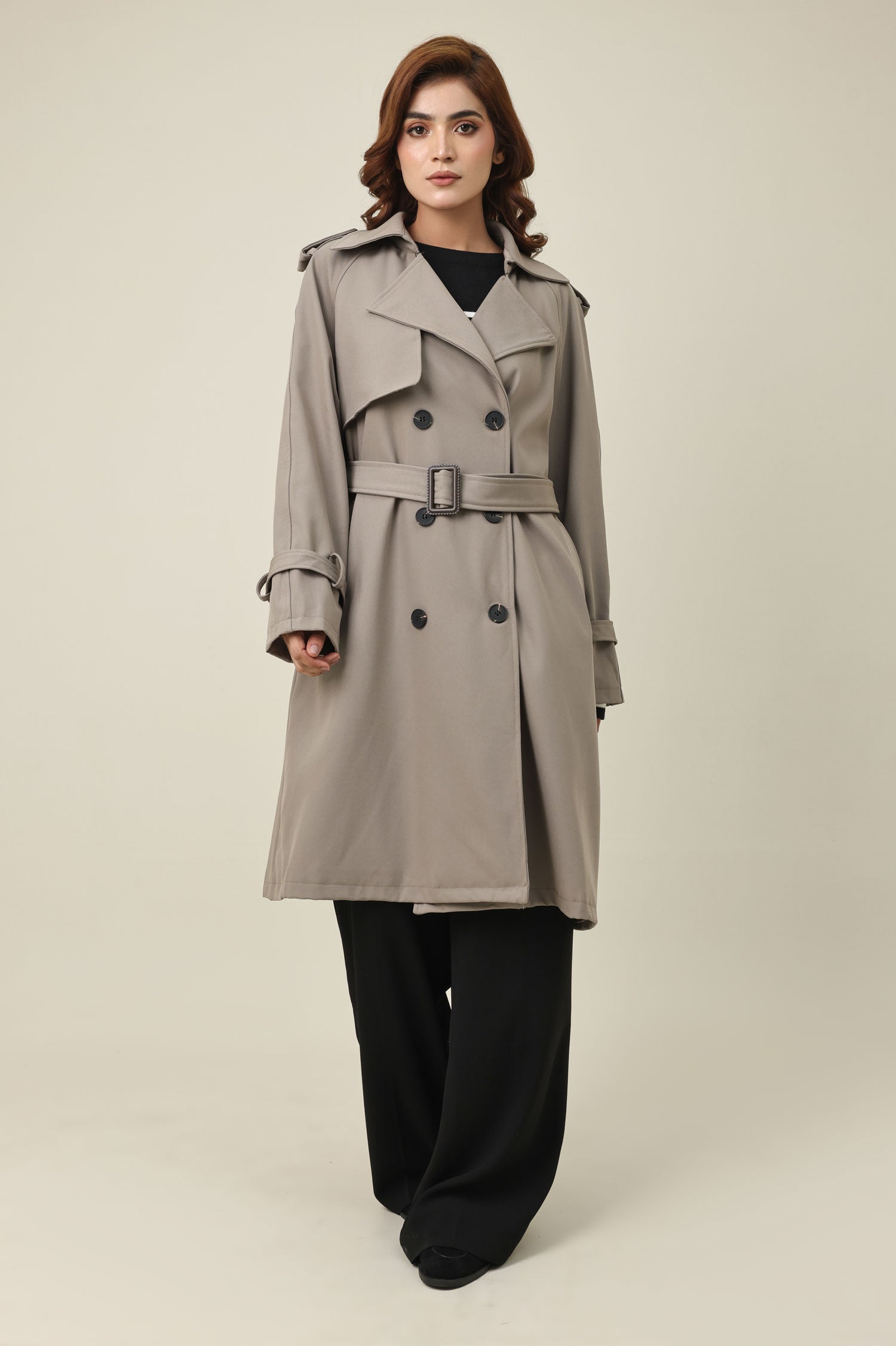 BELTED D-RING COAT-KHAKI