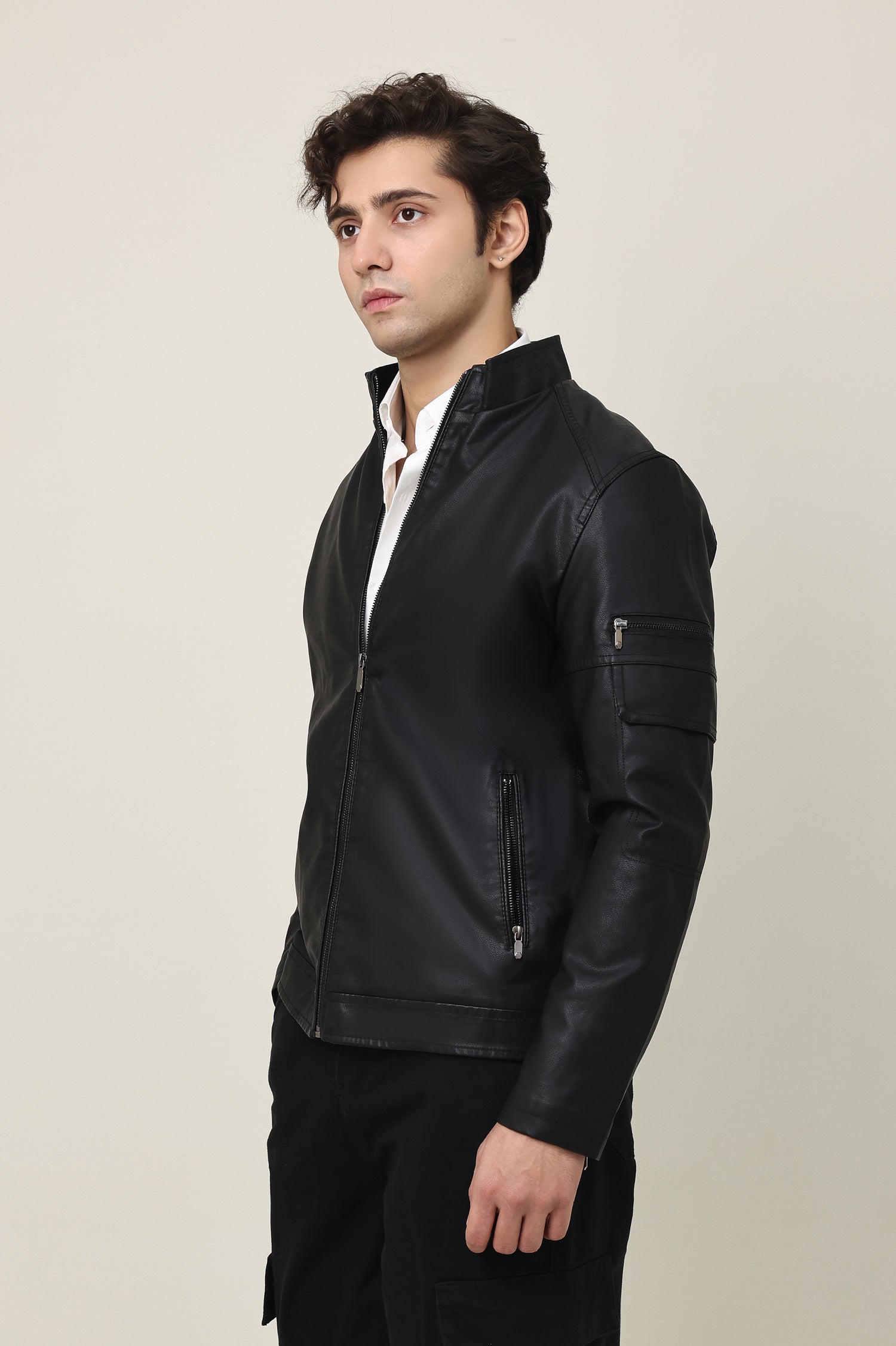 clean cut with minimal accents, this zipped jacket exudes metropolitan cool. tailored for structure and comfort with utility sleeve pocket detailing.