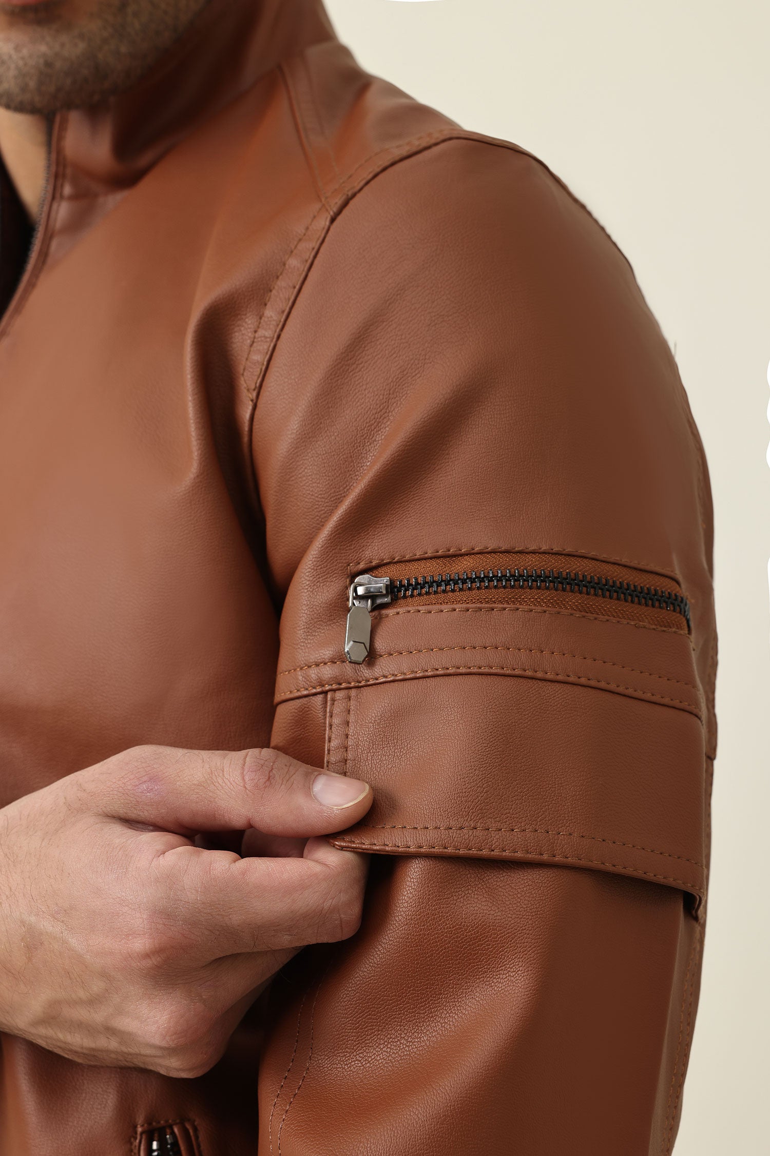 clean cut with minimal accents, this zipped jacket exudes metropolitan cool. tailored for structure and comfort with utility sleeve pocket detailing.