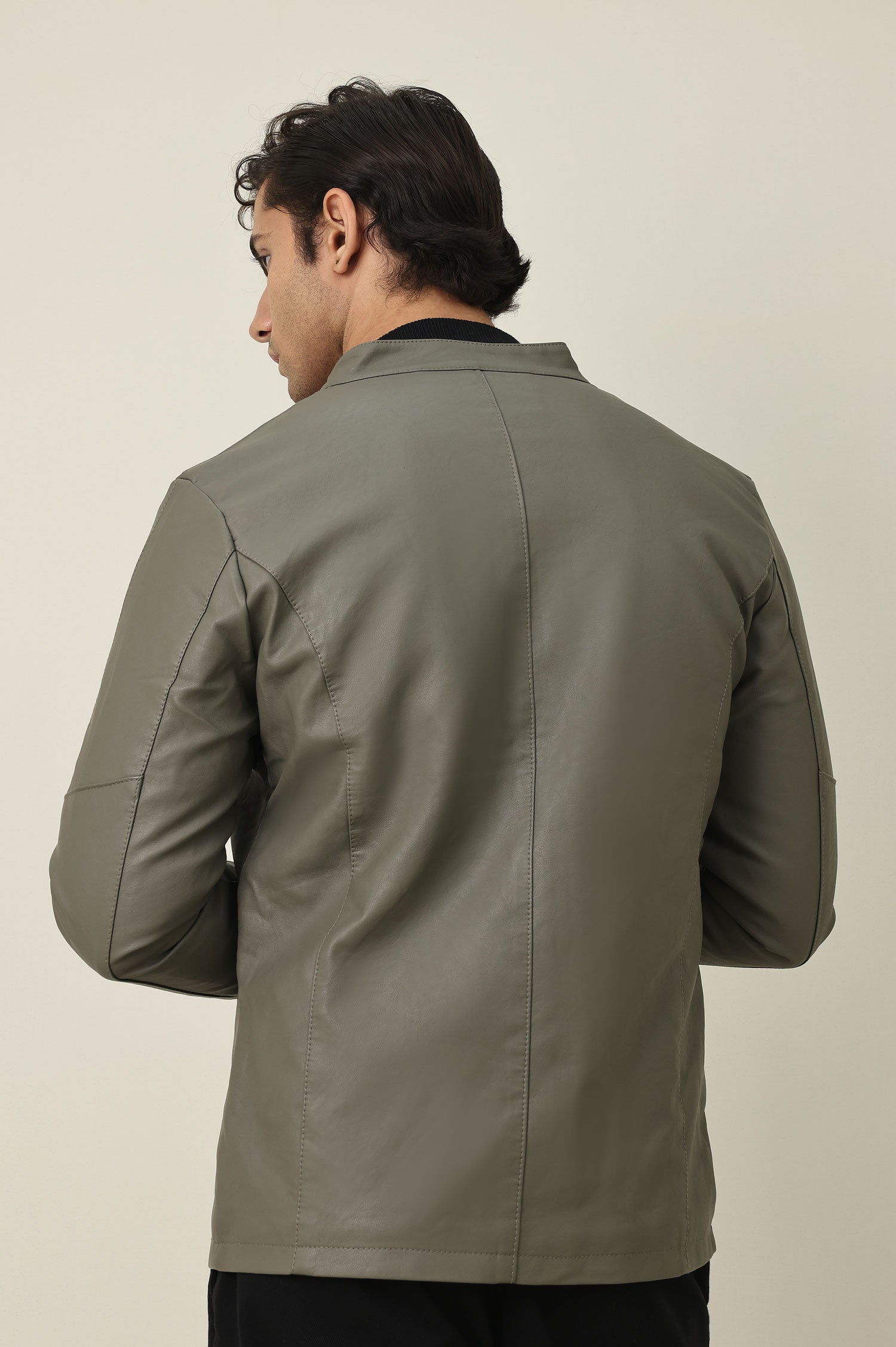 Structured with a sharp mandarin collar and clean panel detailing, this jacket delivers a bold, modern silhouette.