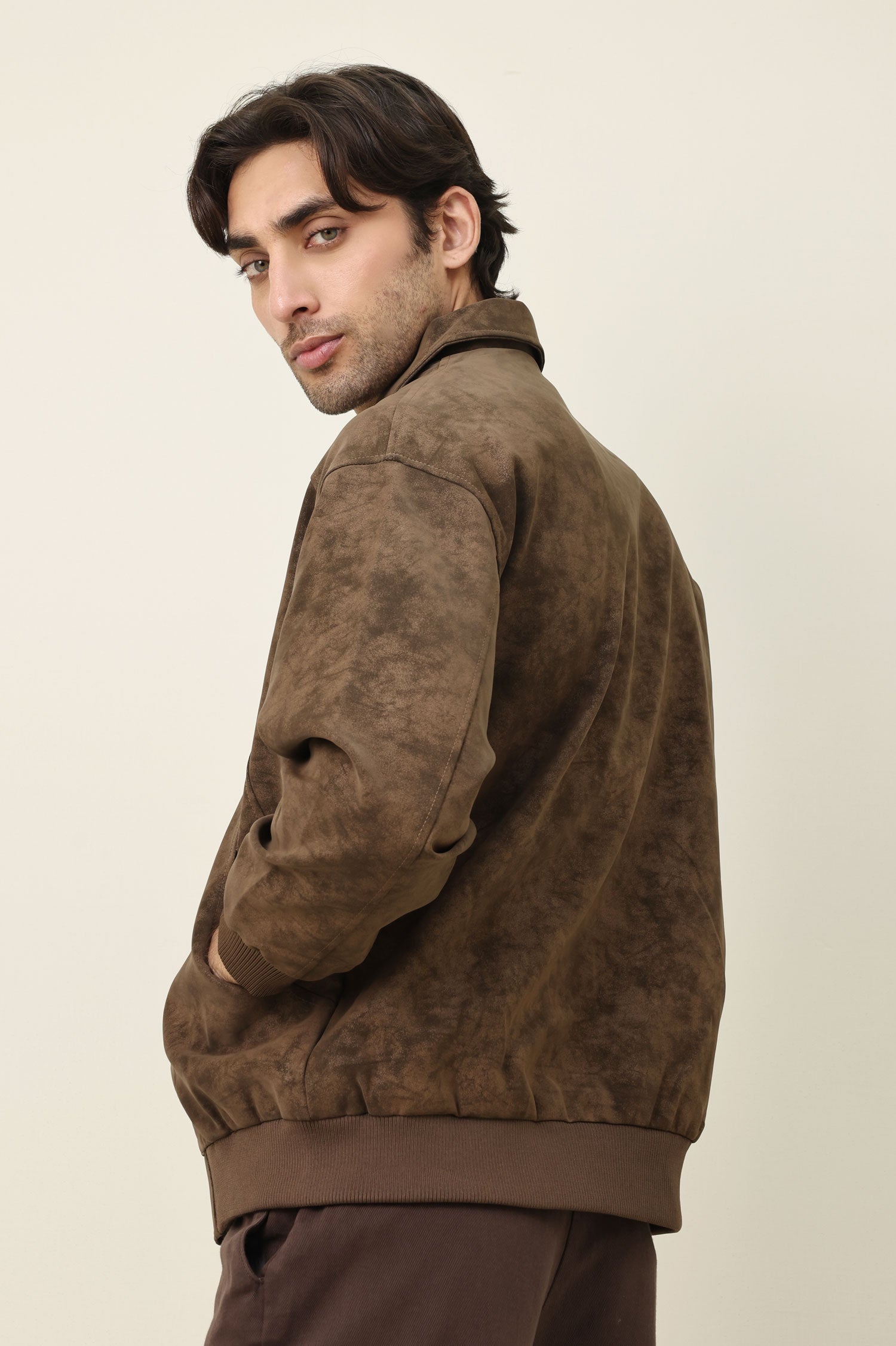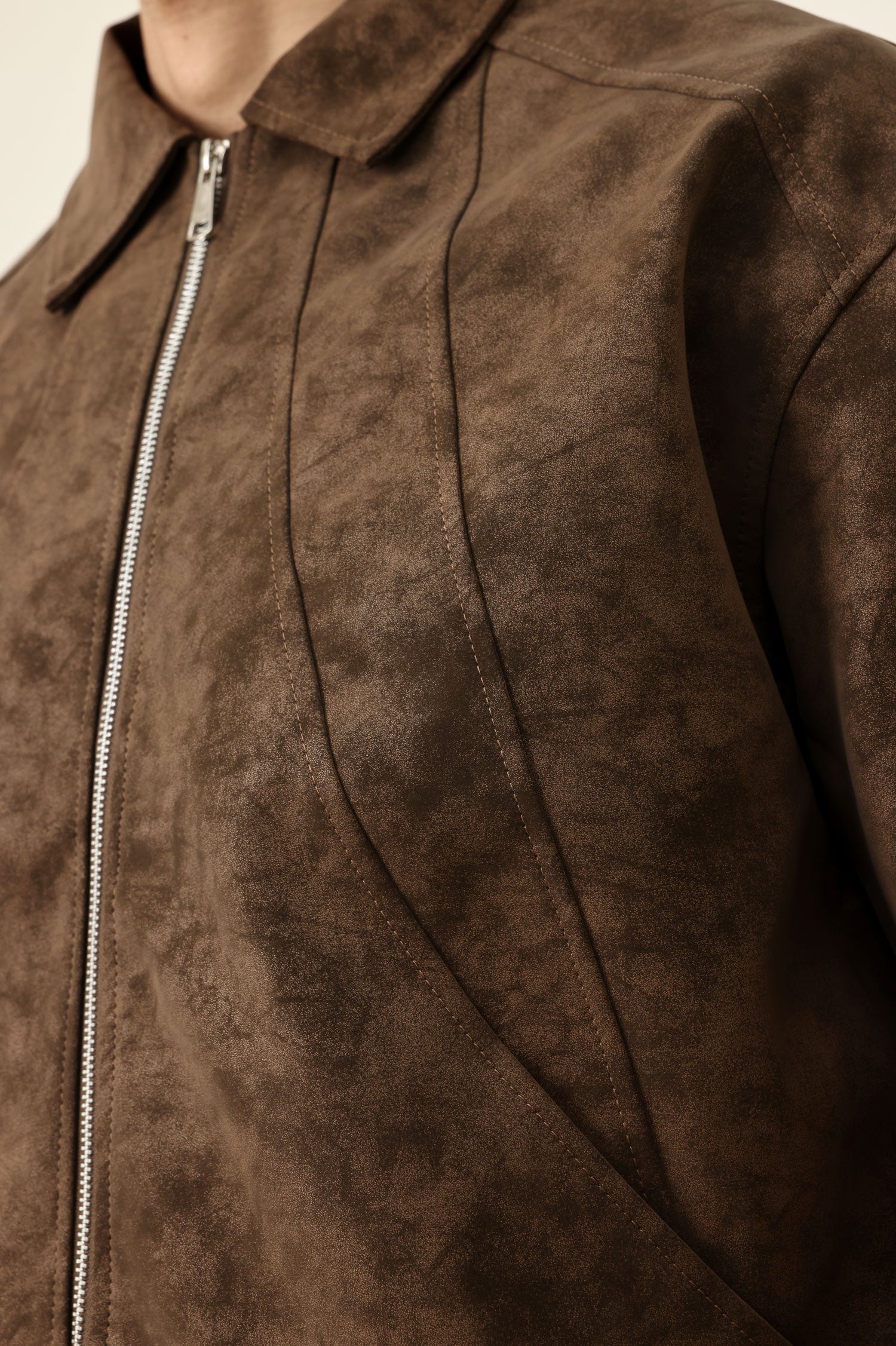 Designed with a slightly oversized cut and soft matte texture, this jacket blends biker influence with casual comfort. Zip-front and wrist cuffs enhance utility. The collar sits neatly with a modern notch.