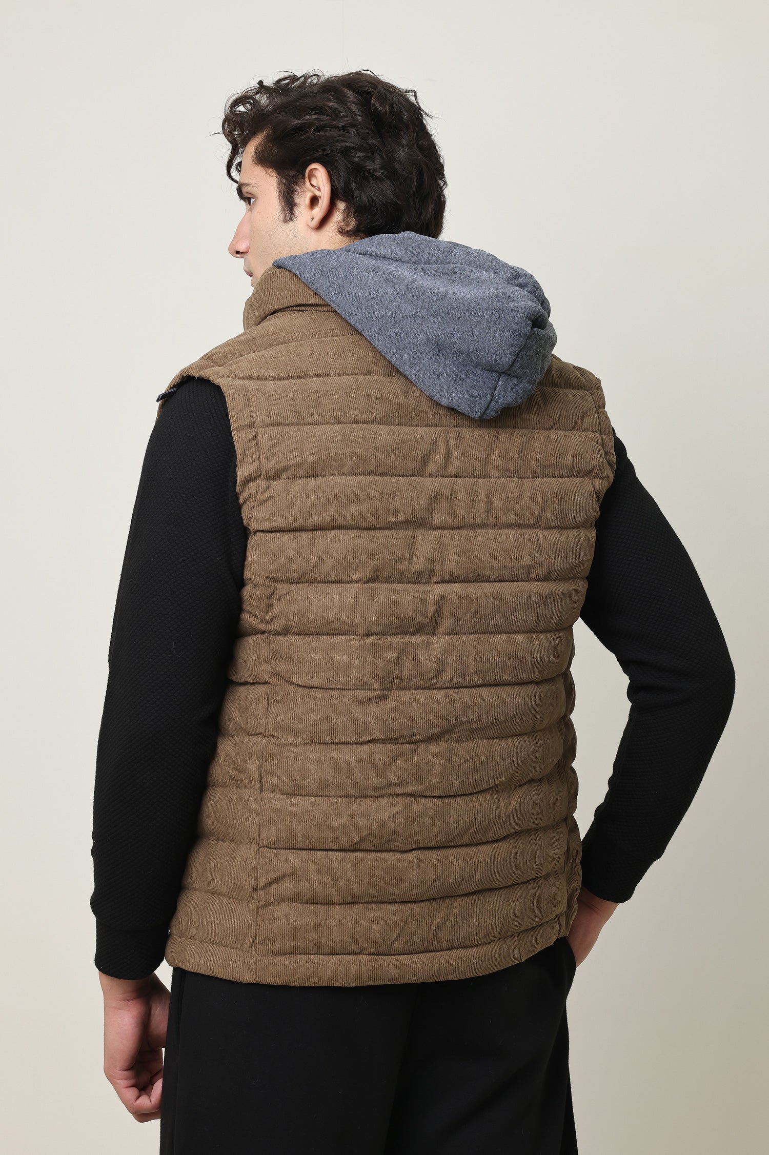 Channel-quilted vest in tonal corduroy brings outdoorsy warmth.