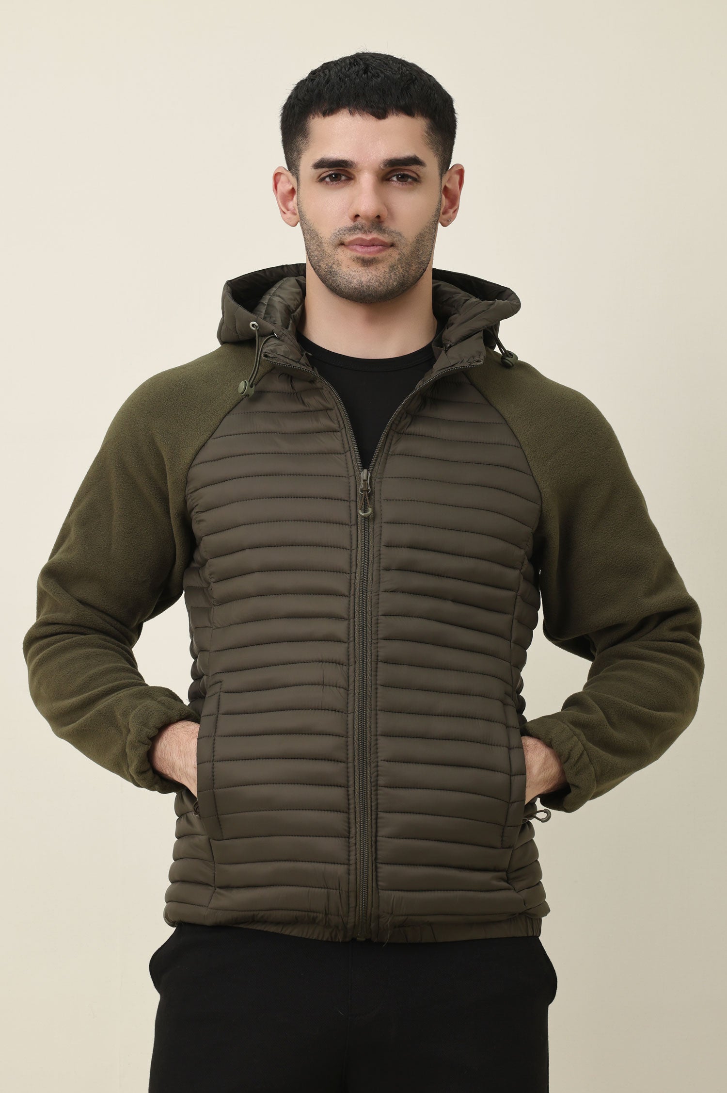 This jacket blends a quilted torso with soft shell sleeves for versatile warmth and mobility. The panel construction channels heat efficiently while allowing flexible movement through the shoulders and arms. A full front zipper provides easy layering and rapid temperature adjustment.