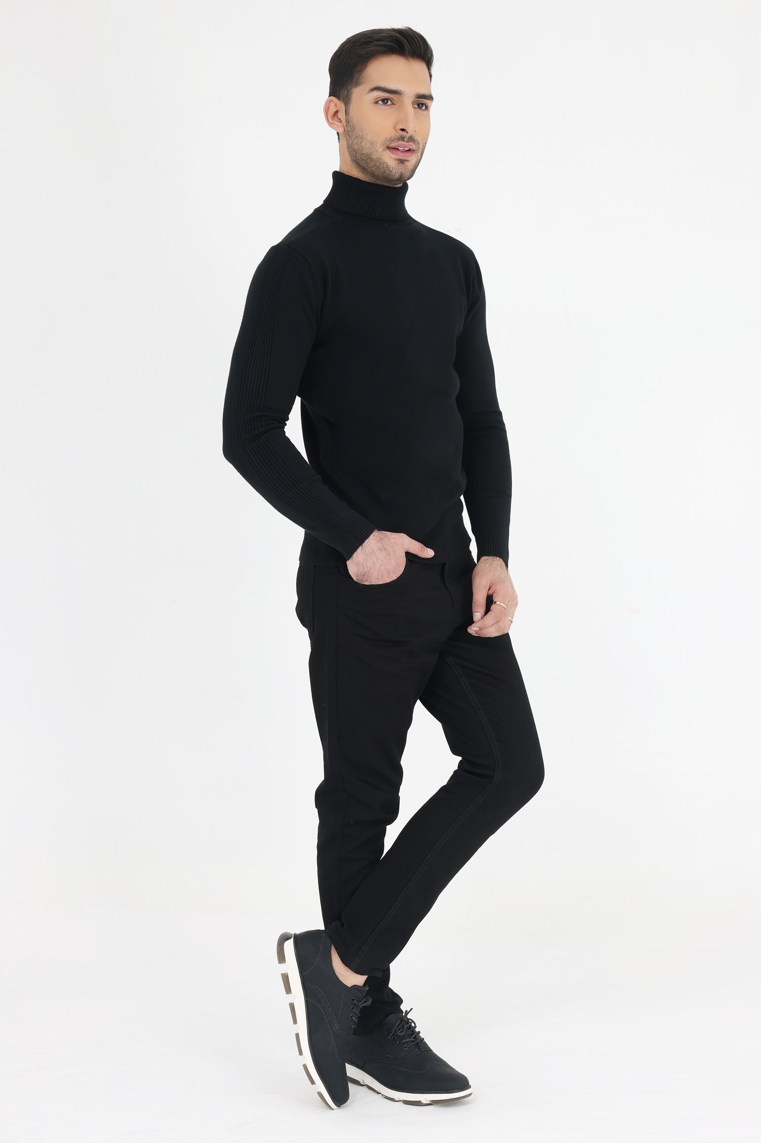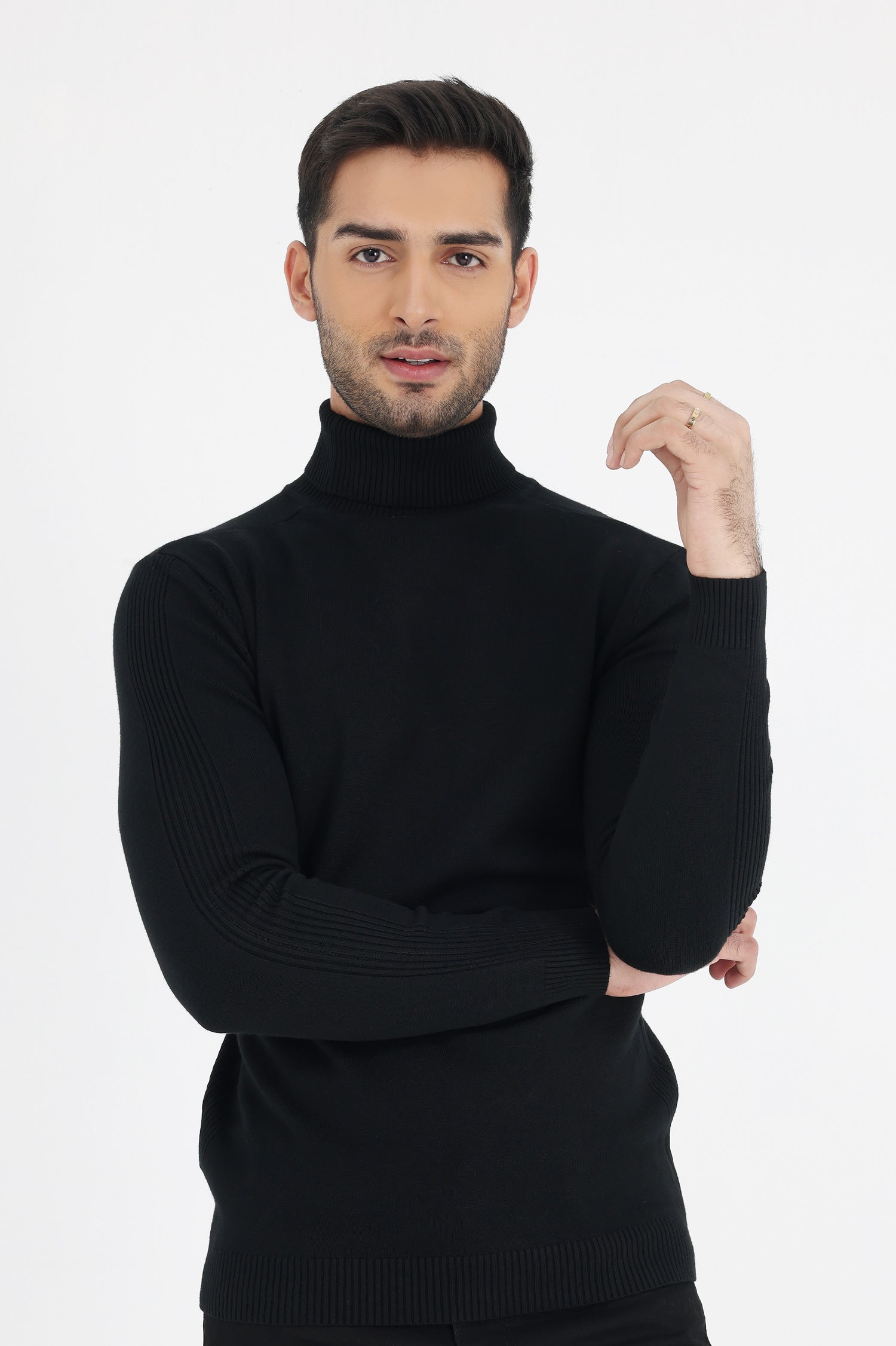 HIGH NECK SWEATER-BLACK