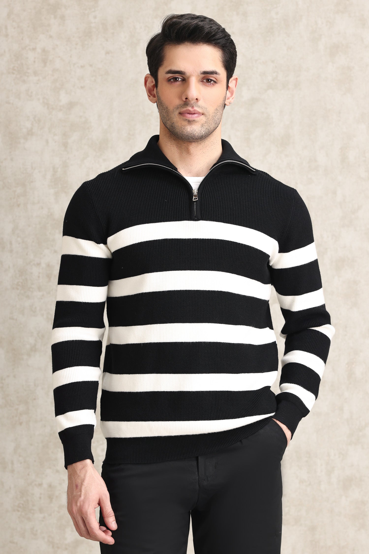 BOLD STRIPE HALF-ZIP SWEATER-BLK-WHT
