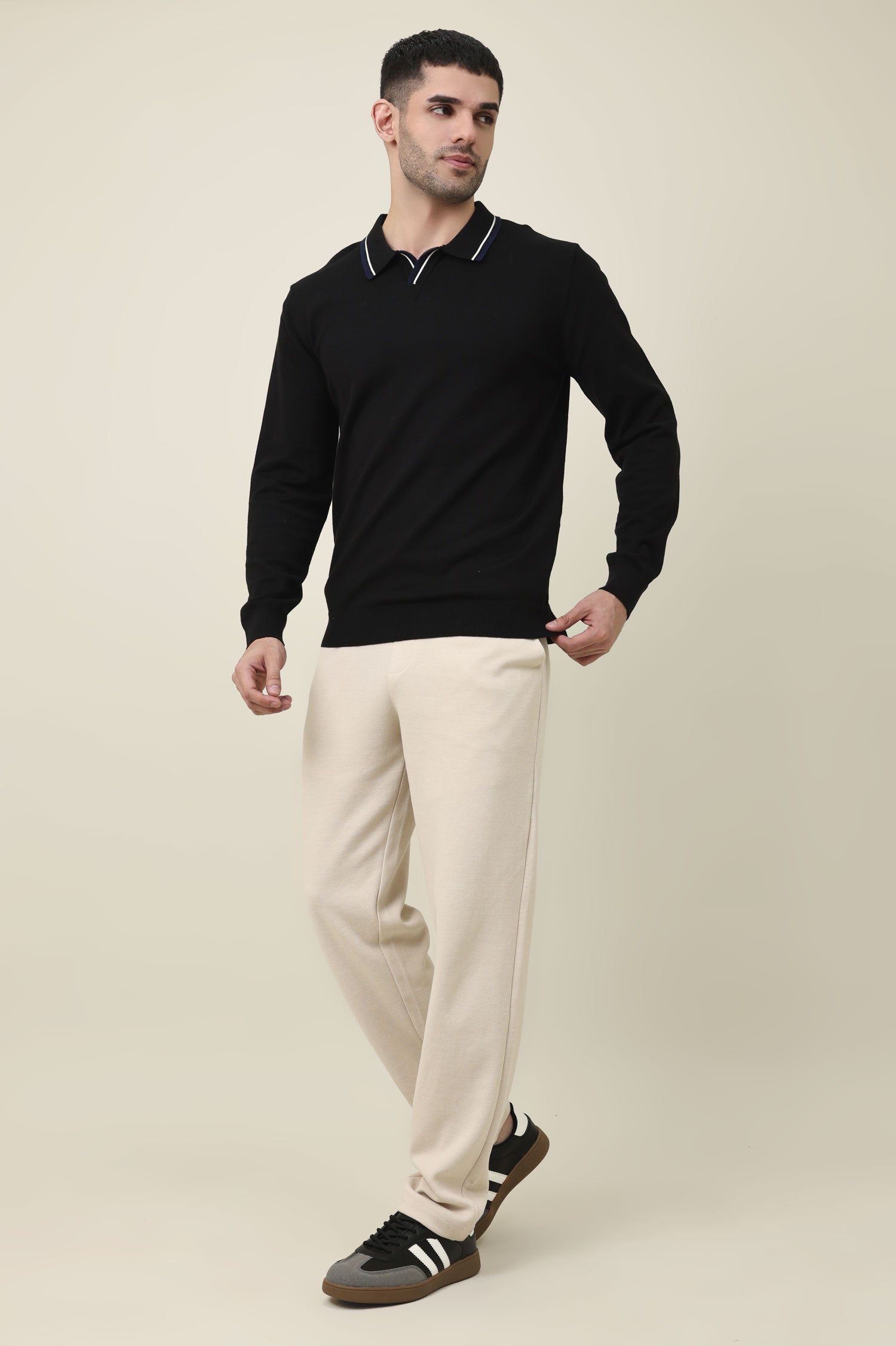 Soft, streamlined silhouette that molds to the body with a comfortable, athletic ease. the knit texture presents a smooth, even surface with subtle ribbing at the hem and cuffs, emphasizing structure without bulk. A classic polo collar with neat contrast trim adds refined detail while maintaining versatile wear for both casual and semi-formal outfits.