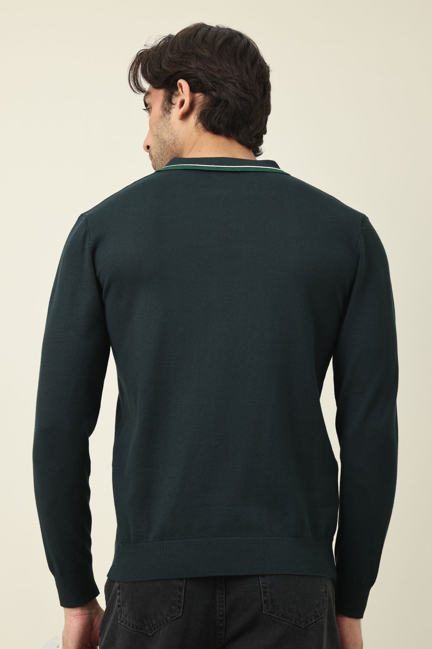Soft, streamlined silhouette that molds to the body with a comfortable, athletic ease. the knit texture presents a smooth, even surface with subtle ribbing at the hem and cuffs, emphasizing structure without bulk. A classic polo collar with neat contrast trim adds refined detail while maintaining versatile wear for both casual and semi-formal outfits.