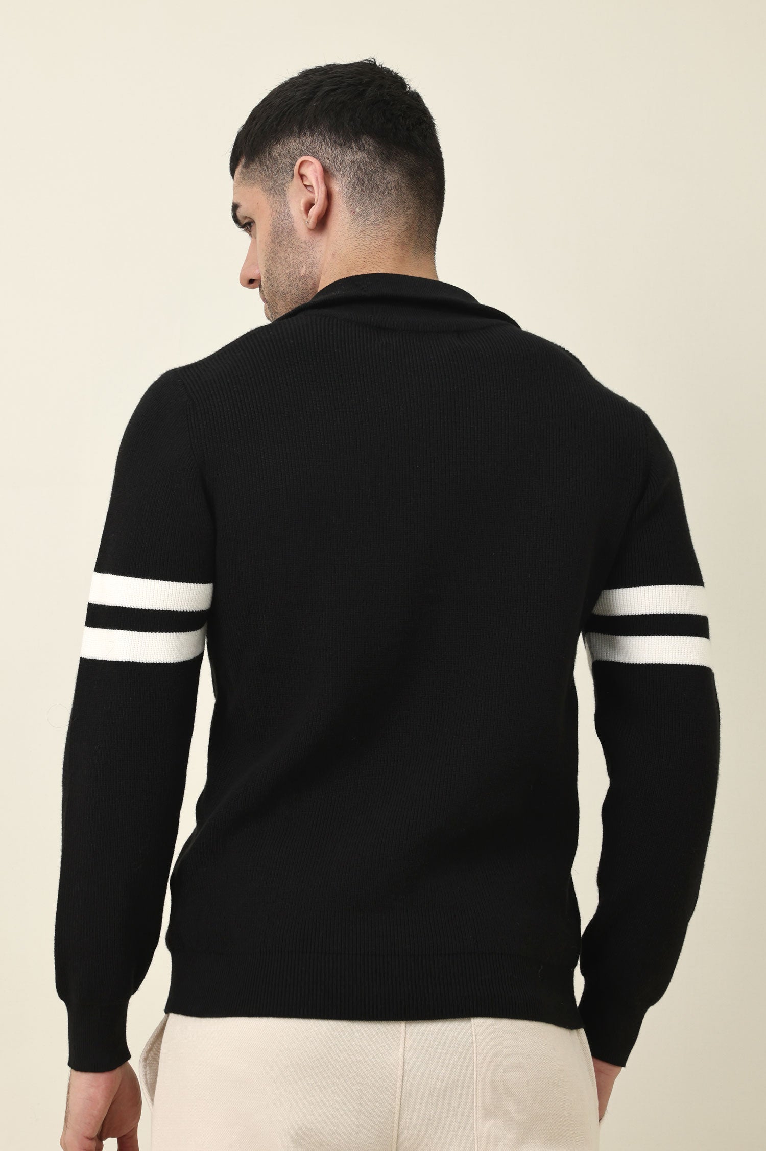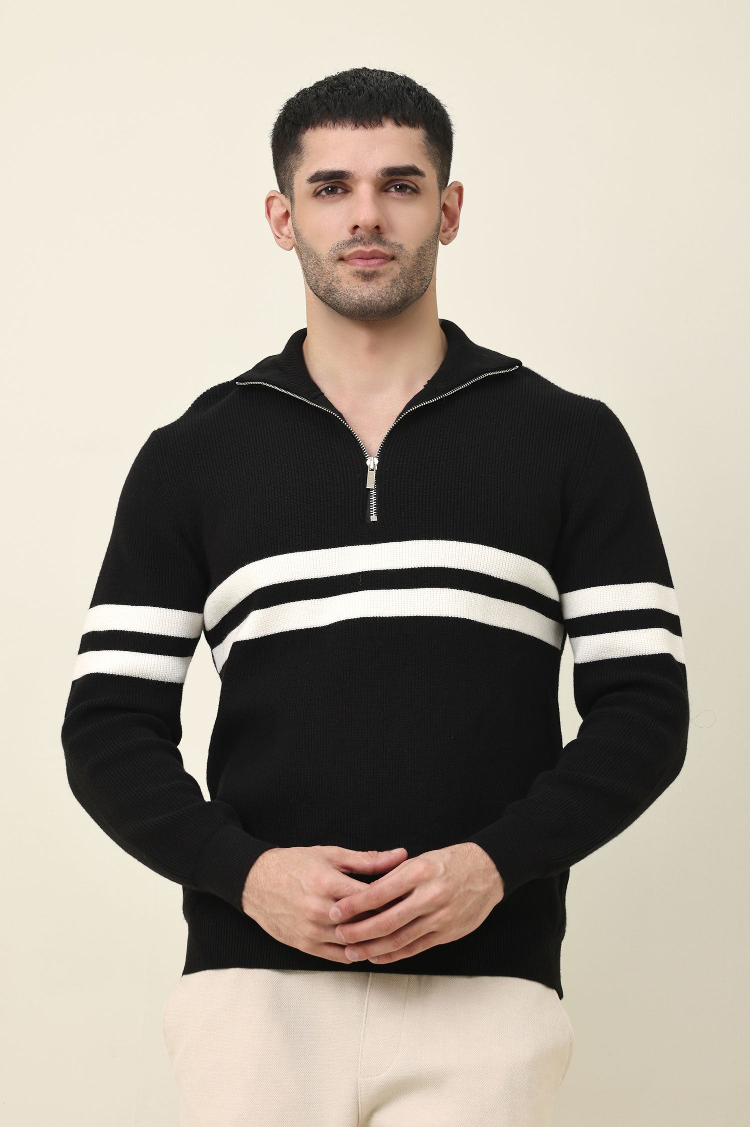 A versatile mid-layer engineered for everyday warmth and easy styling. The horizontal stripe motif adds visual interest without relying on color emphasis. The zip neck provides customizable coverage when temperatures shift.