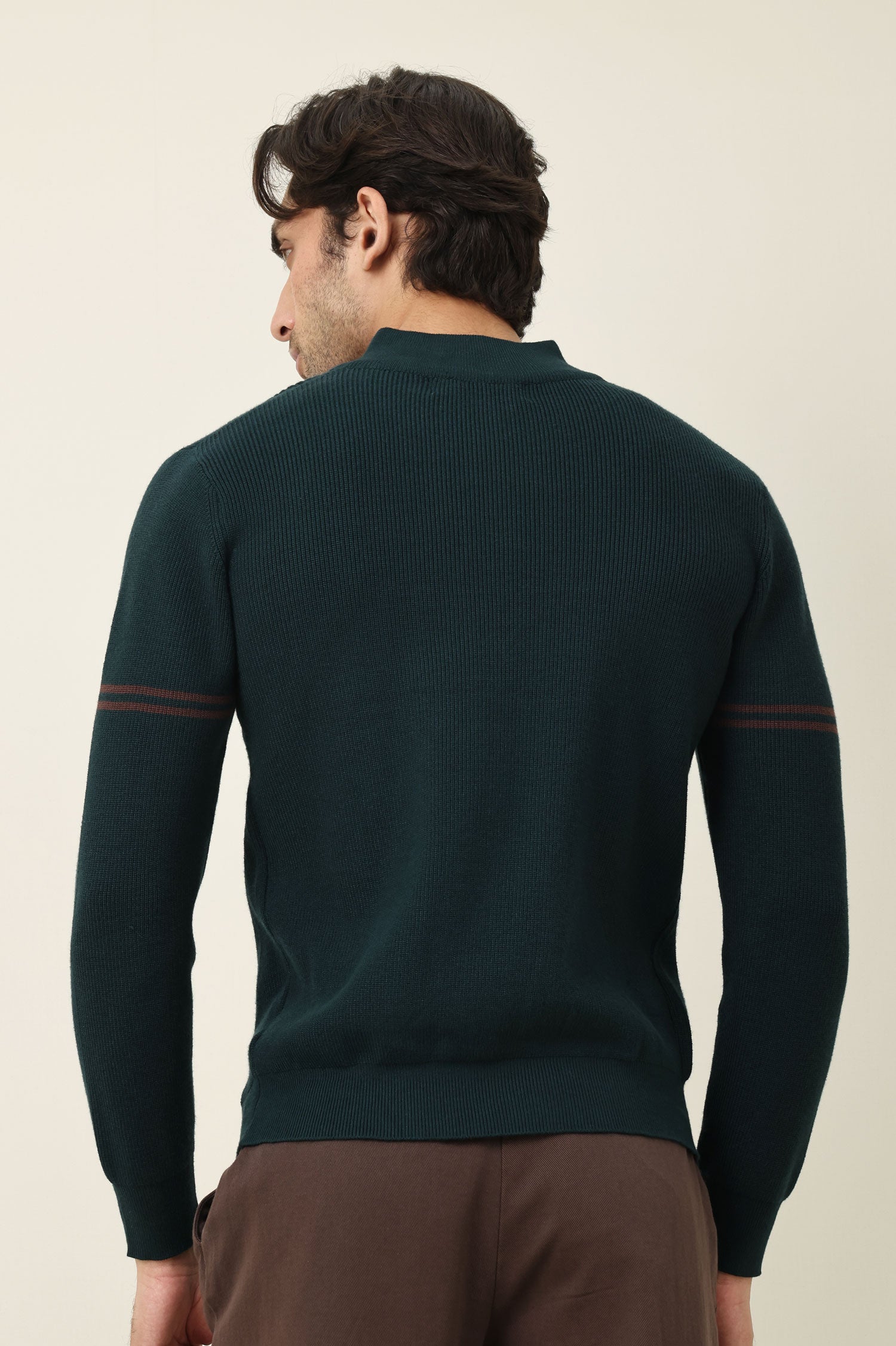 URBAN KNIT HALF ZIP SWEATER-GREEN