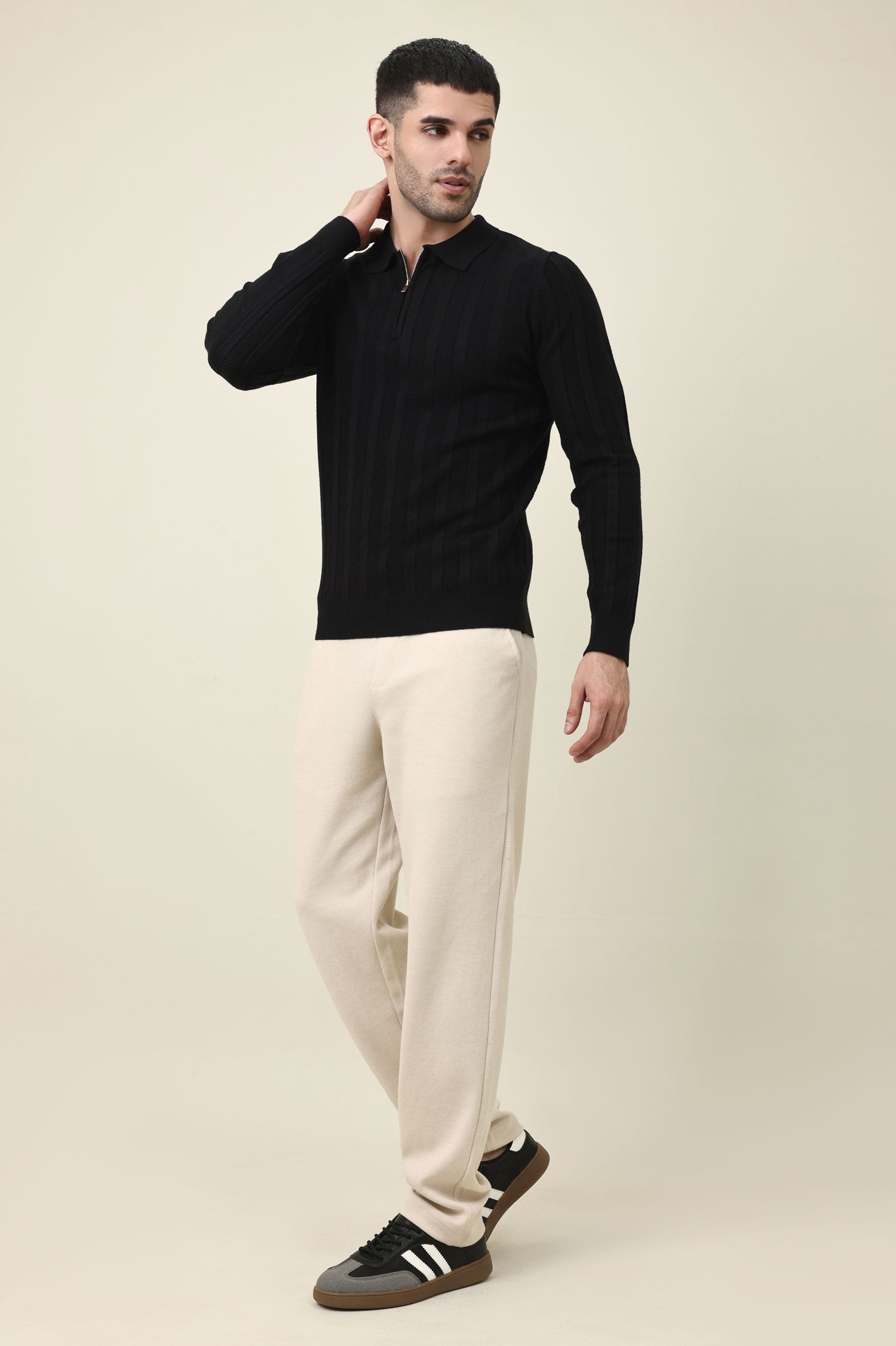 COLLAR KNITPOLO SWEATER-BLACK