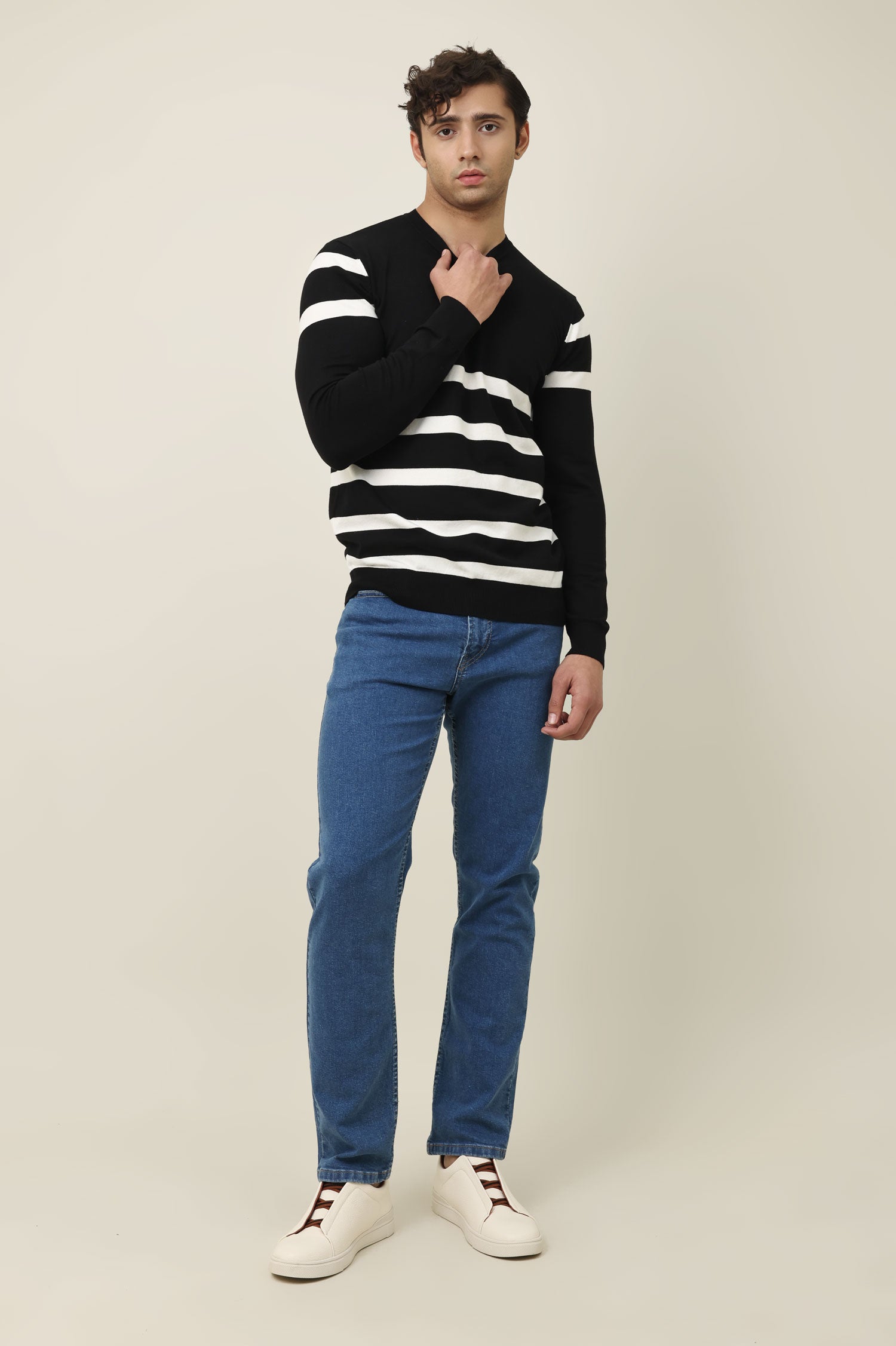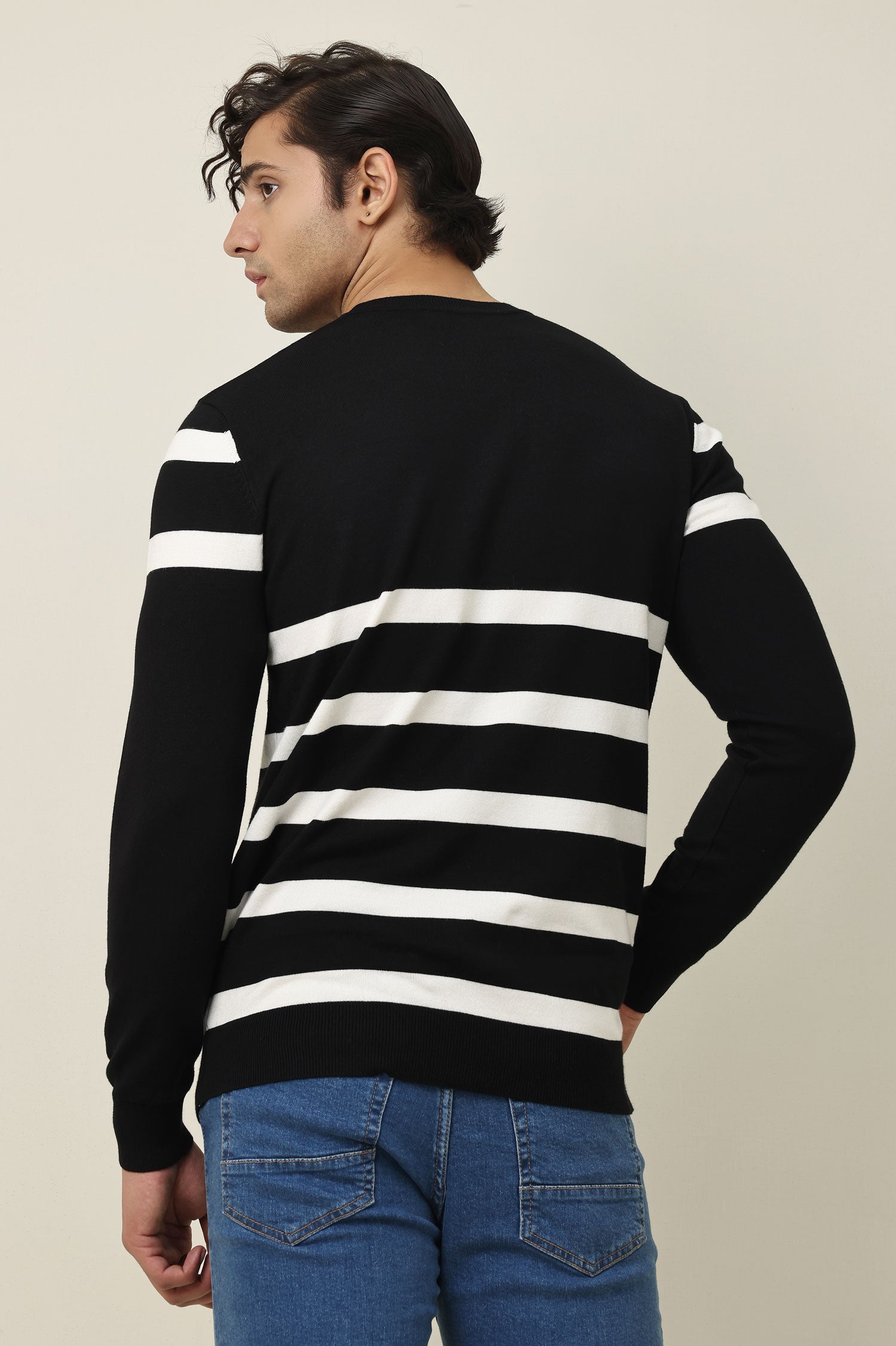 A versatile wardrobe staple with modern stripe placement and a relaxed fit. The crew neckline keeps it clean and casual for any occasion.