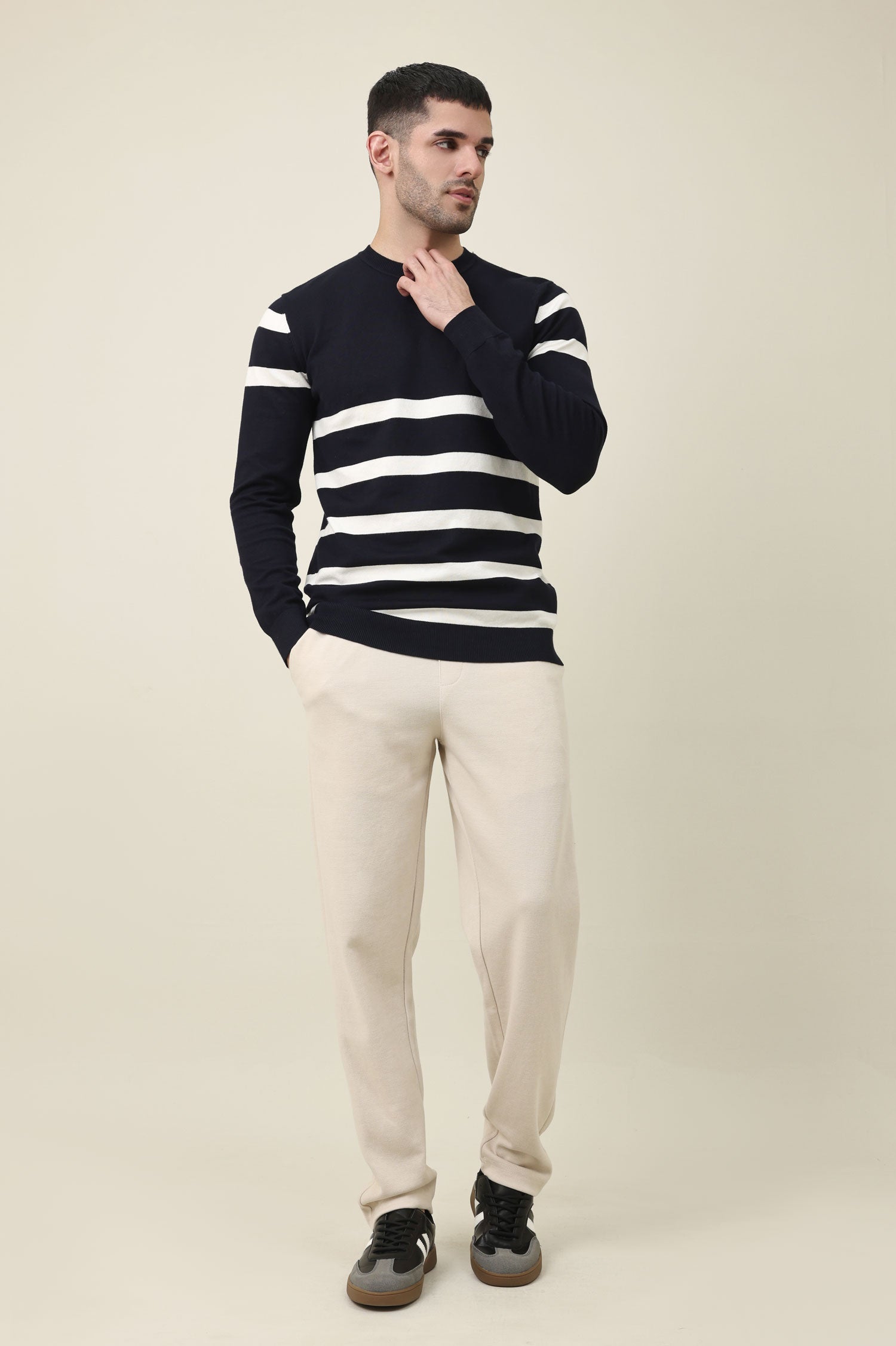 A versatile wardrobe staple with modern stripe placement and a relaxed fit. The crew neckline keeps it clean and casual for any occasion.