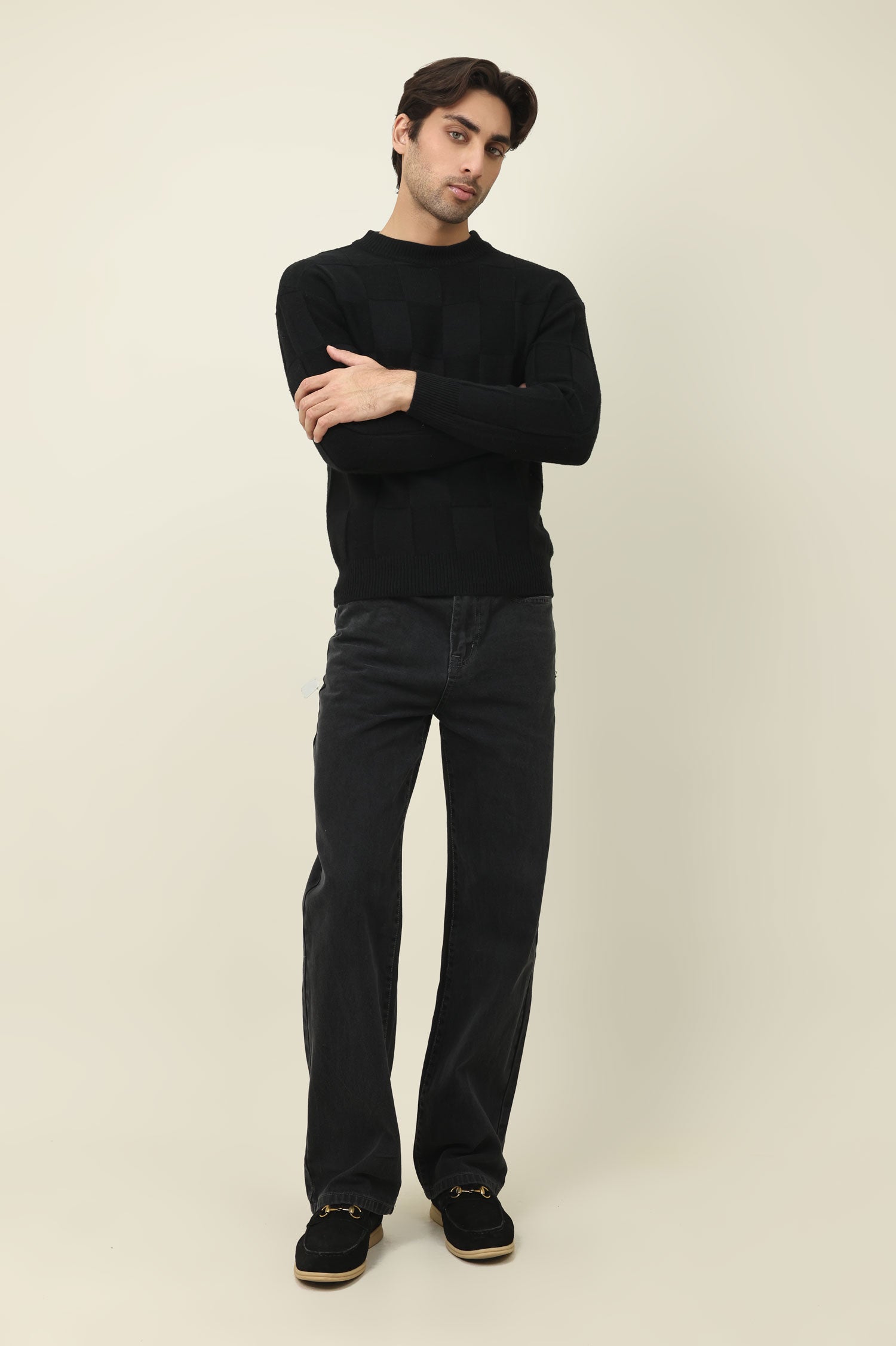 CHECKMATE PULLOVER SWEATER-BLACK