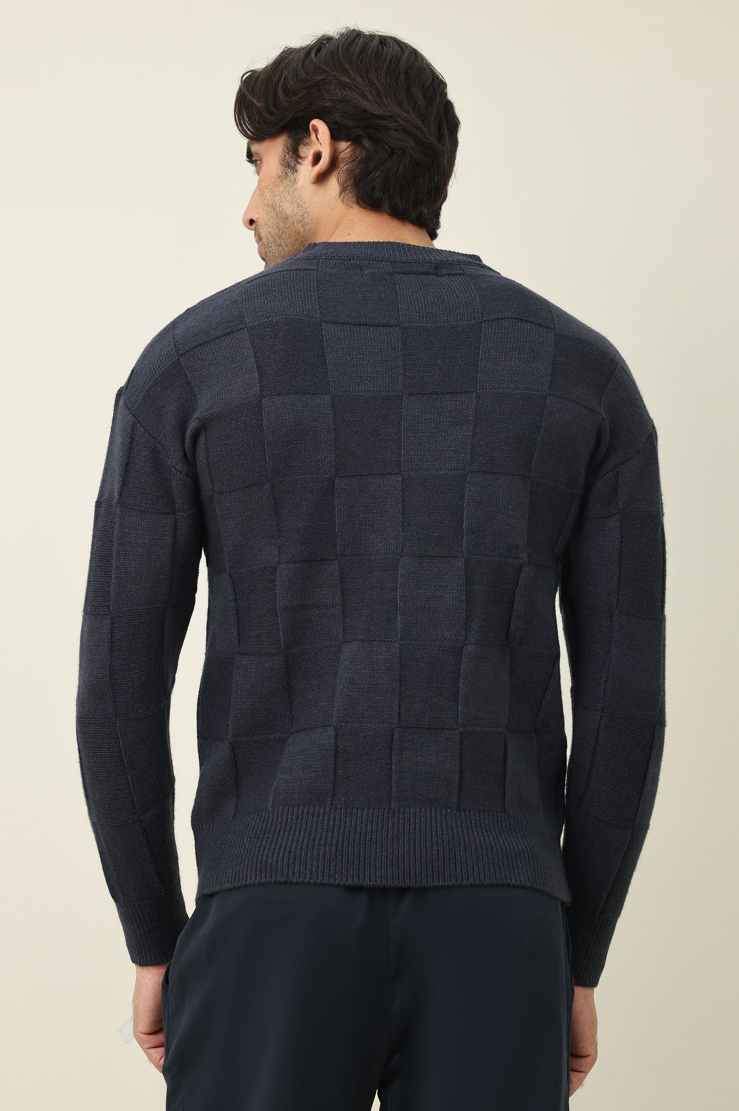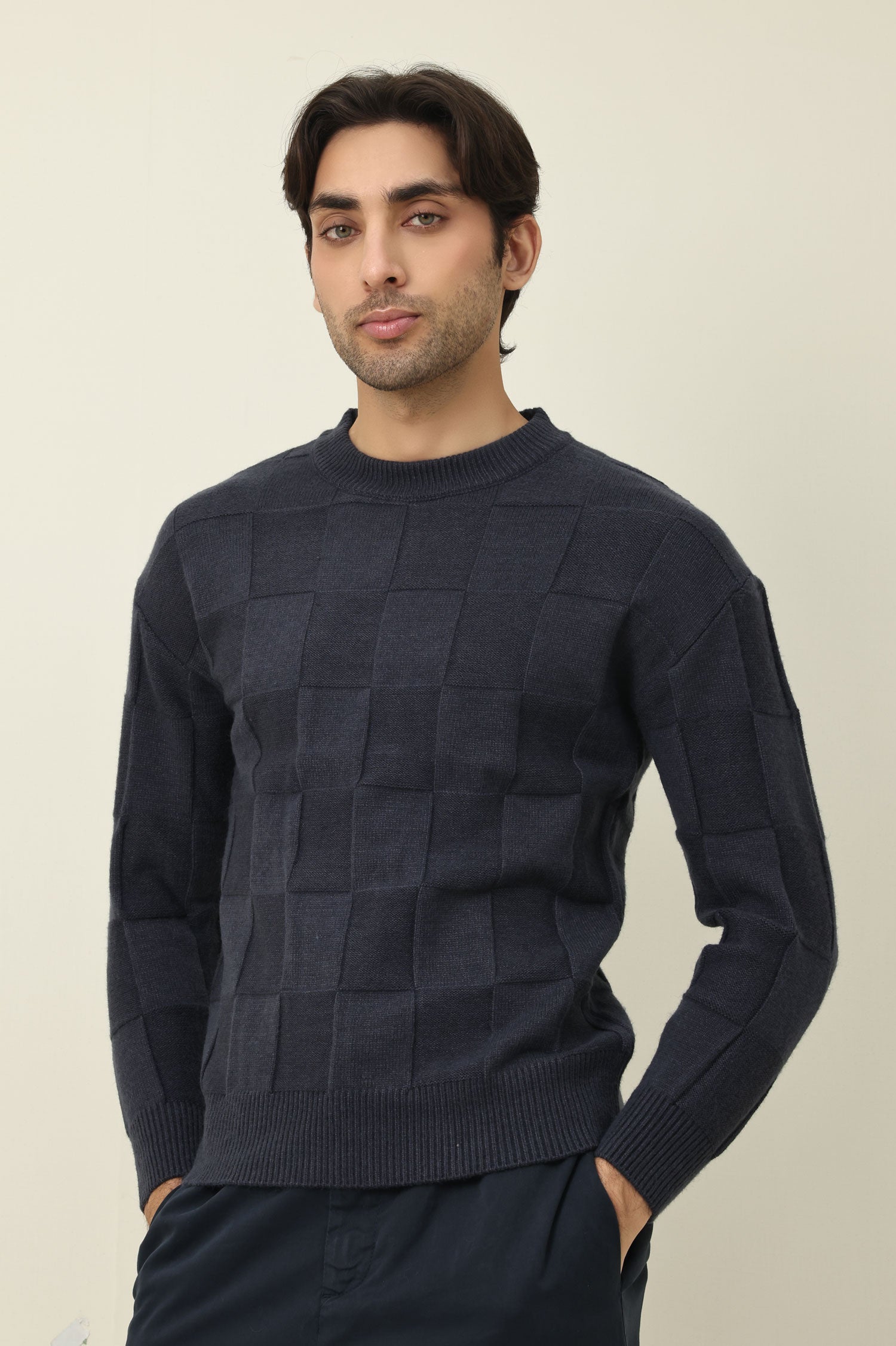 Crafted with dimensional blocks in alternating knits, this sweater is a subtle statement piece. Ideal for seasonal layering and transitional style.