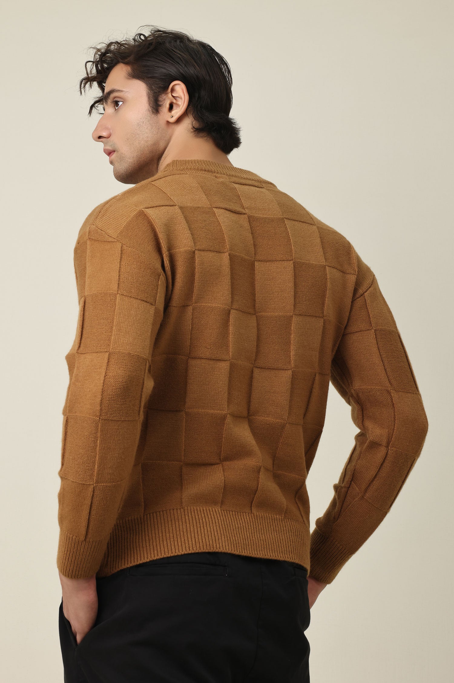 Crafted with dimensional blocks in alternating knits, this sweater is a subtle statement piece. Ideal for seasonal layering and transitional style.