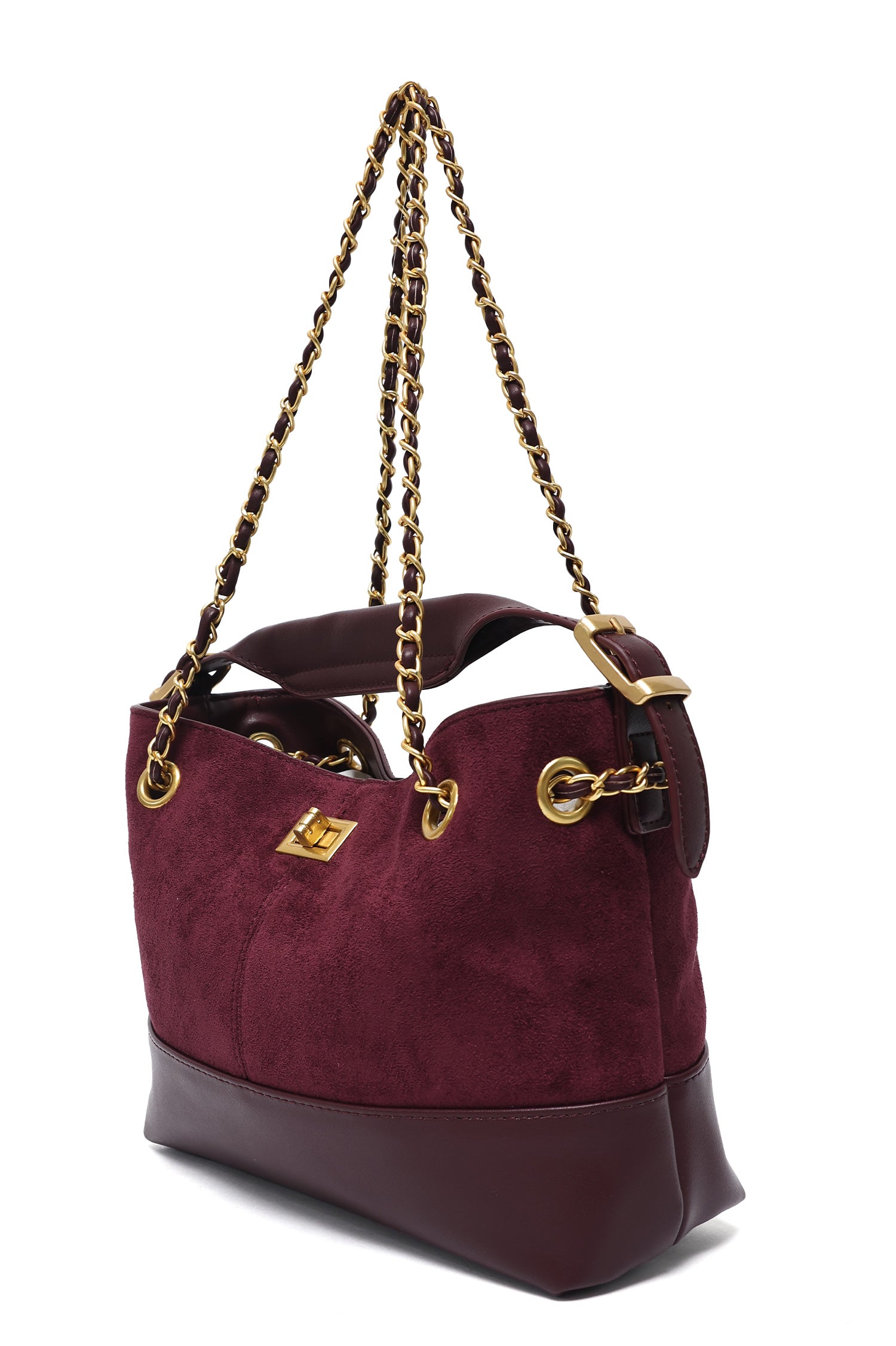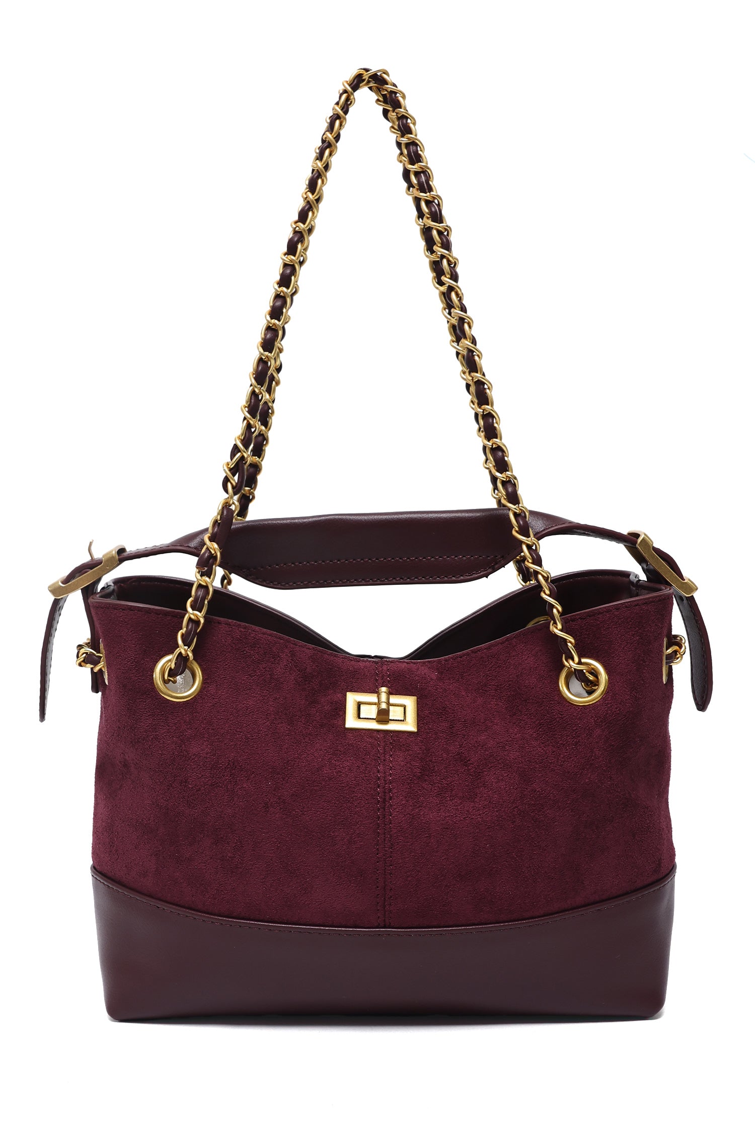 An elegant curved frame shapes the silhouette with subtle fluidity. Central hardware detail anchors the design with symmetry. Balanced proportions offer both structure and softness. A timeless piece with contemporary presence.