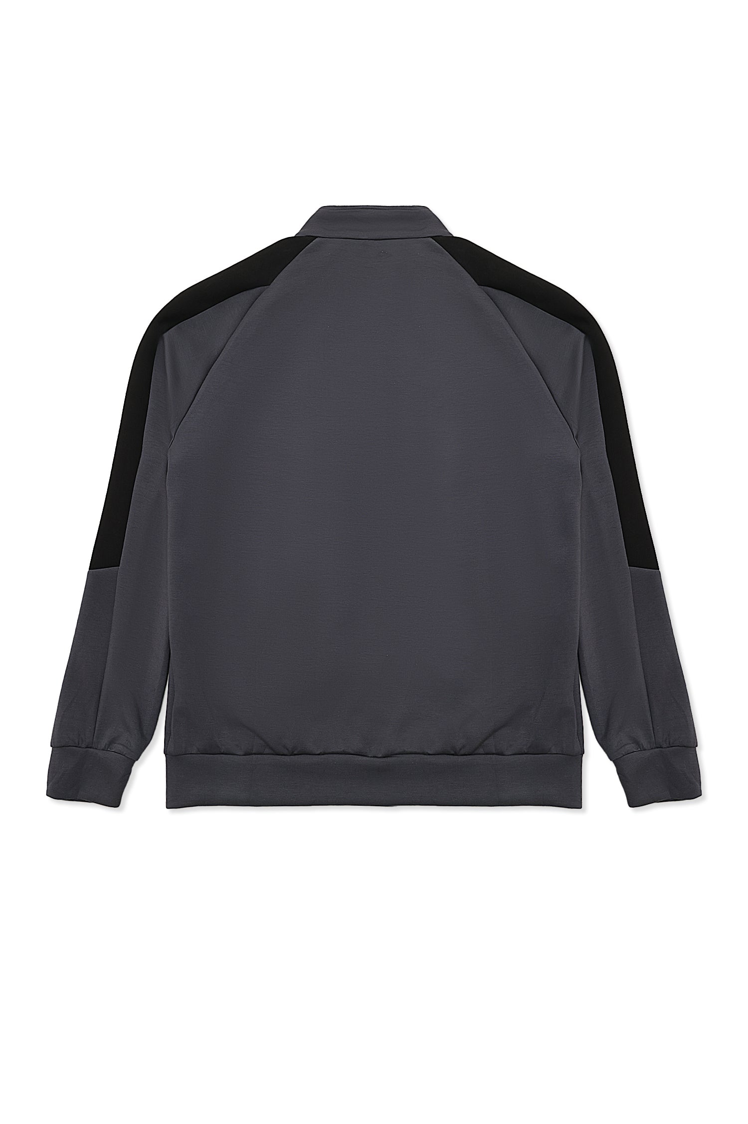 This lightweight jacket features a sharp pointed collar in textured contrast fabric for a refined touch. Zip-up front and relaxed structure offer a clean, modern silhouette. Pairs effortlessly over textured knits and neutral layering.