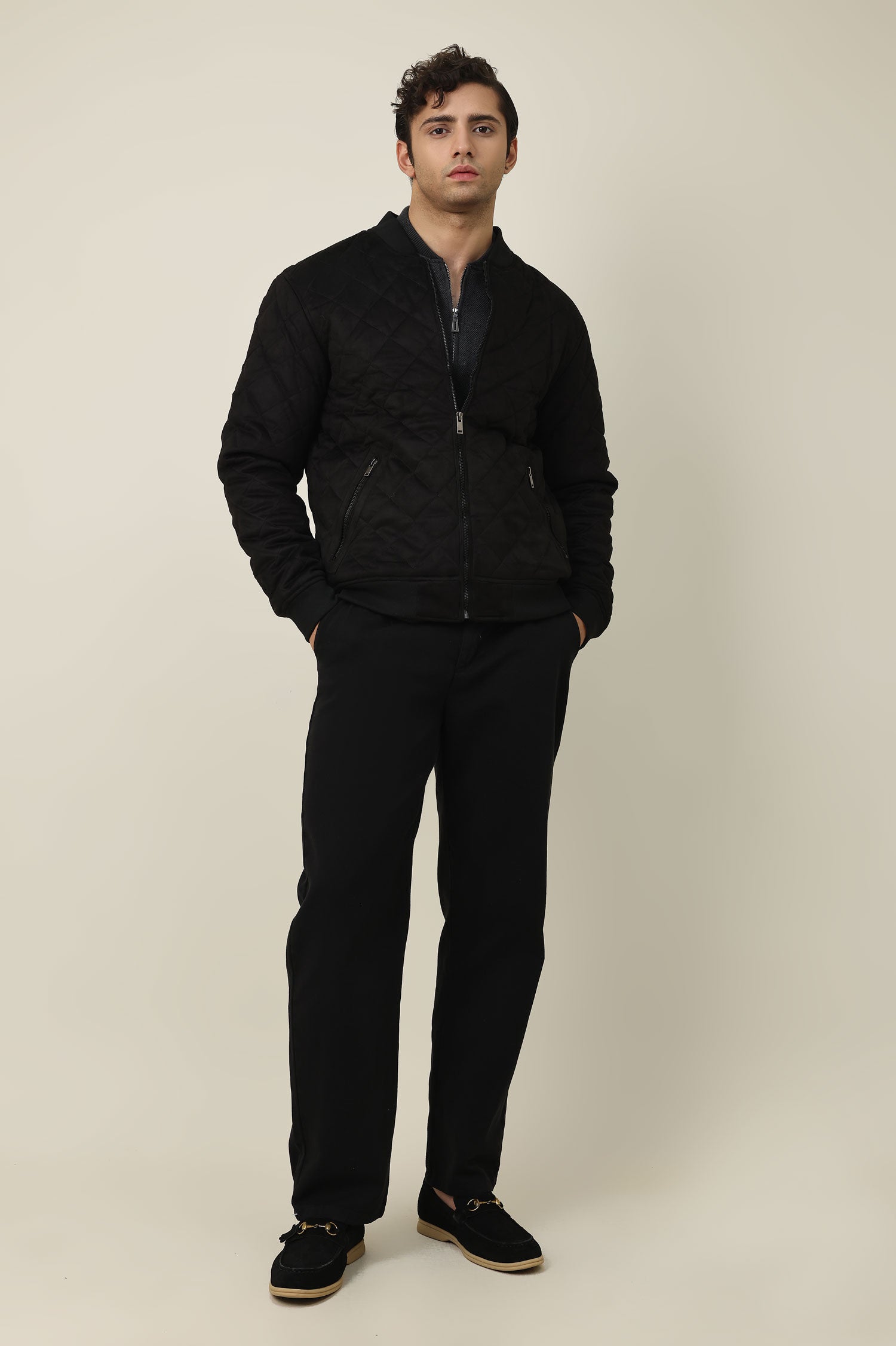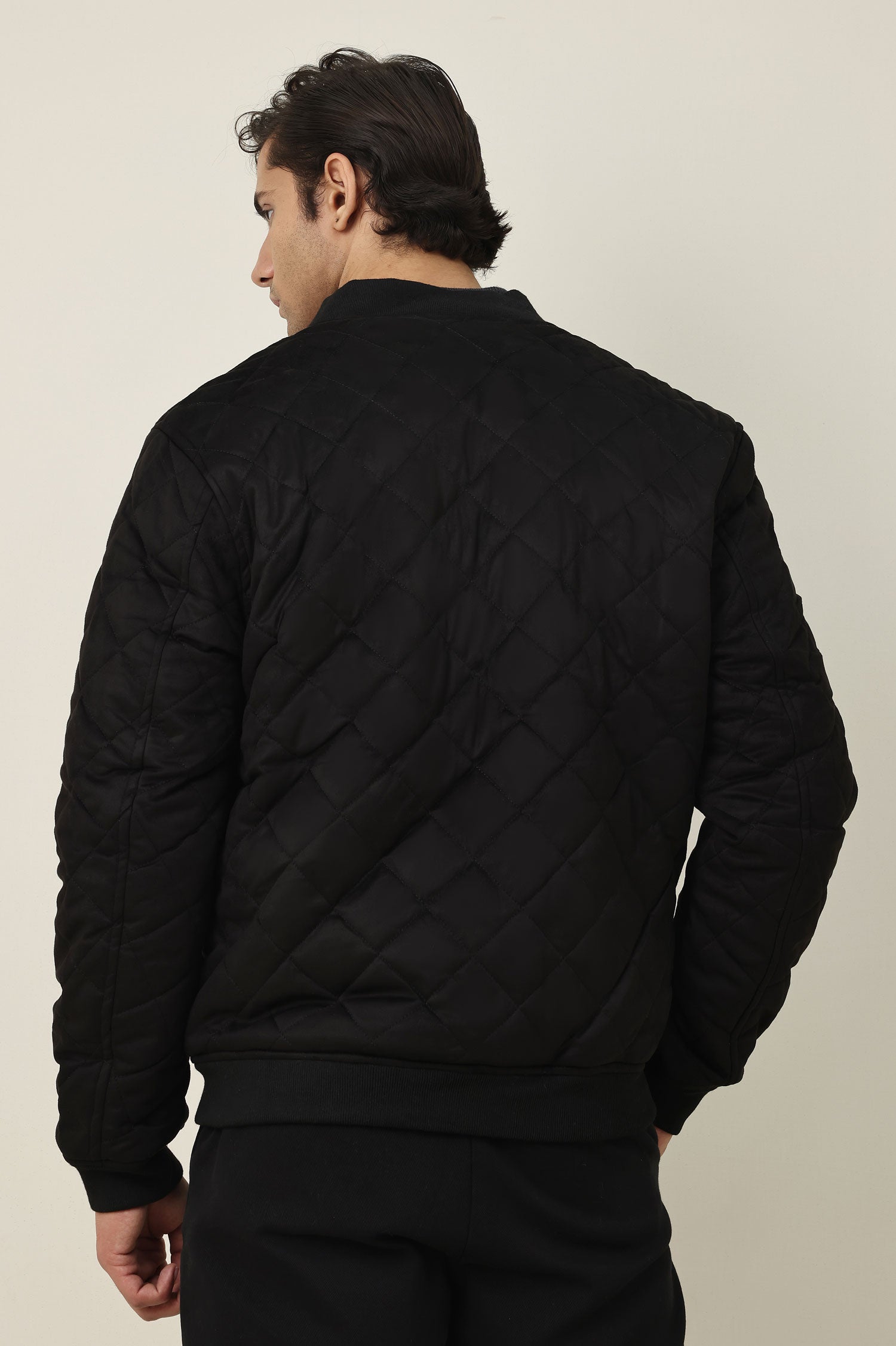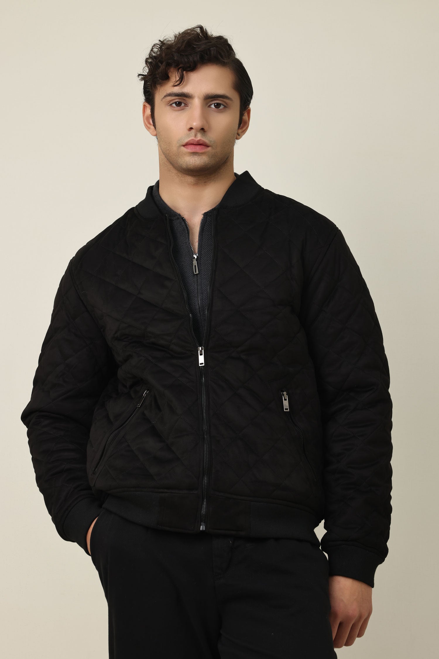 With deep-toned quilting and a clean ribbed neckline, this bomber fuses edge and comfort for versatile seasonal layering.