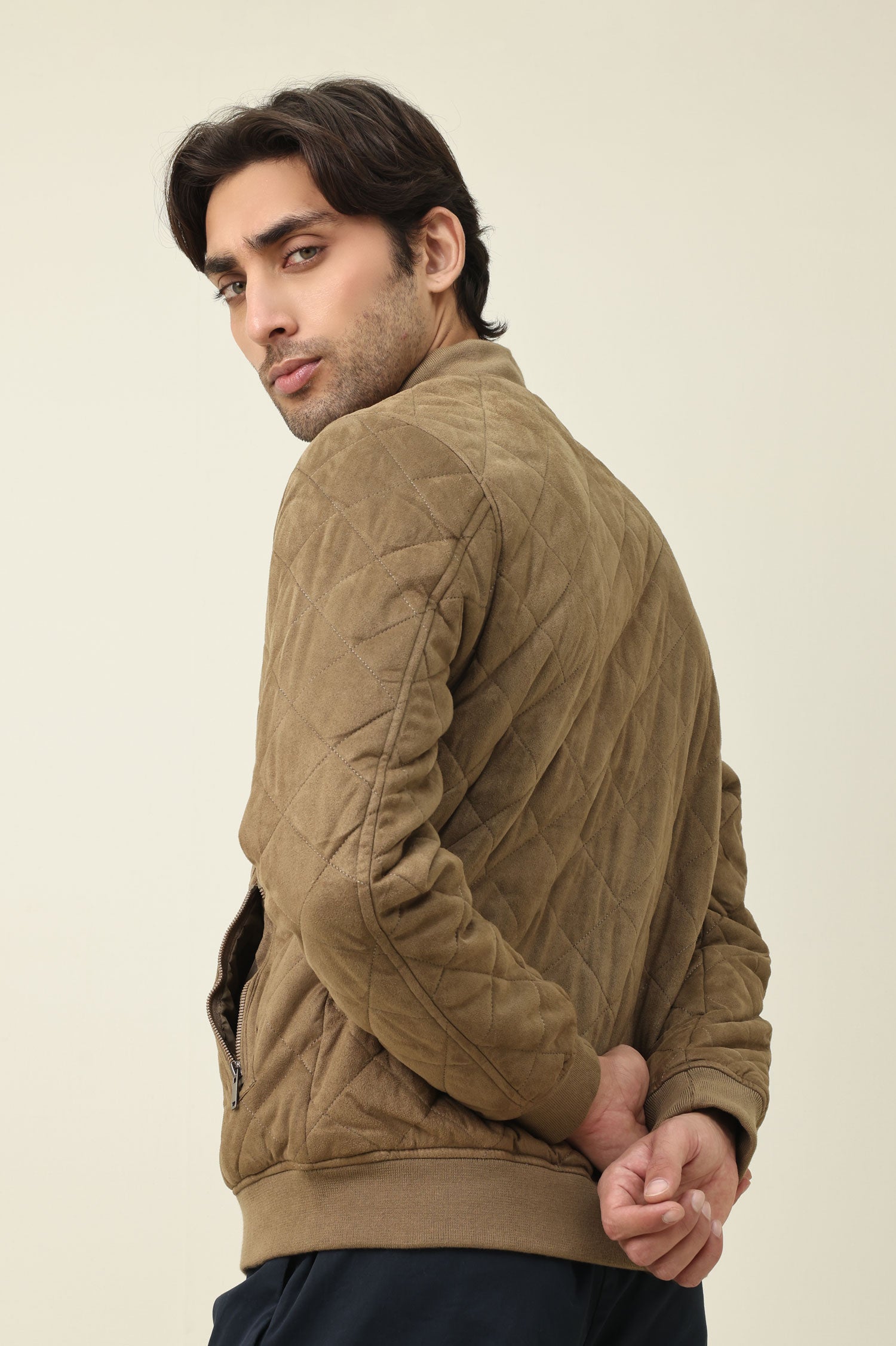 With deep-toned quilting and a clean ribbed neckline, this bomber fuses edge and comfort for versatile seasonal layering.