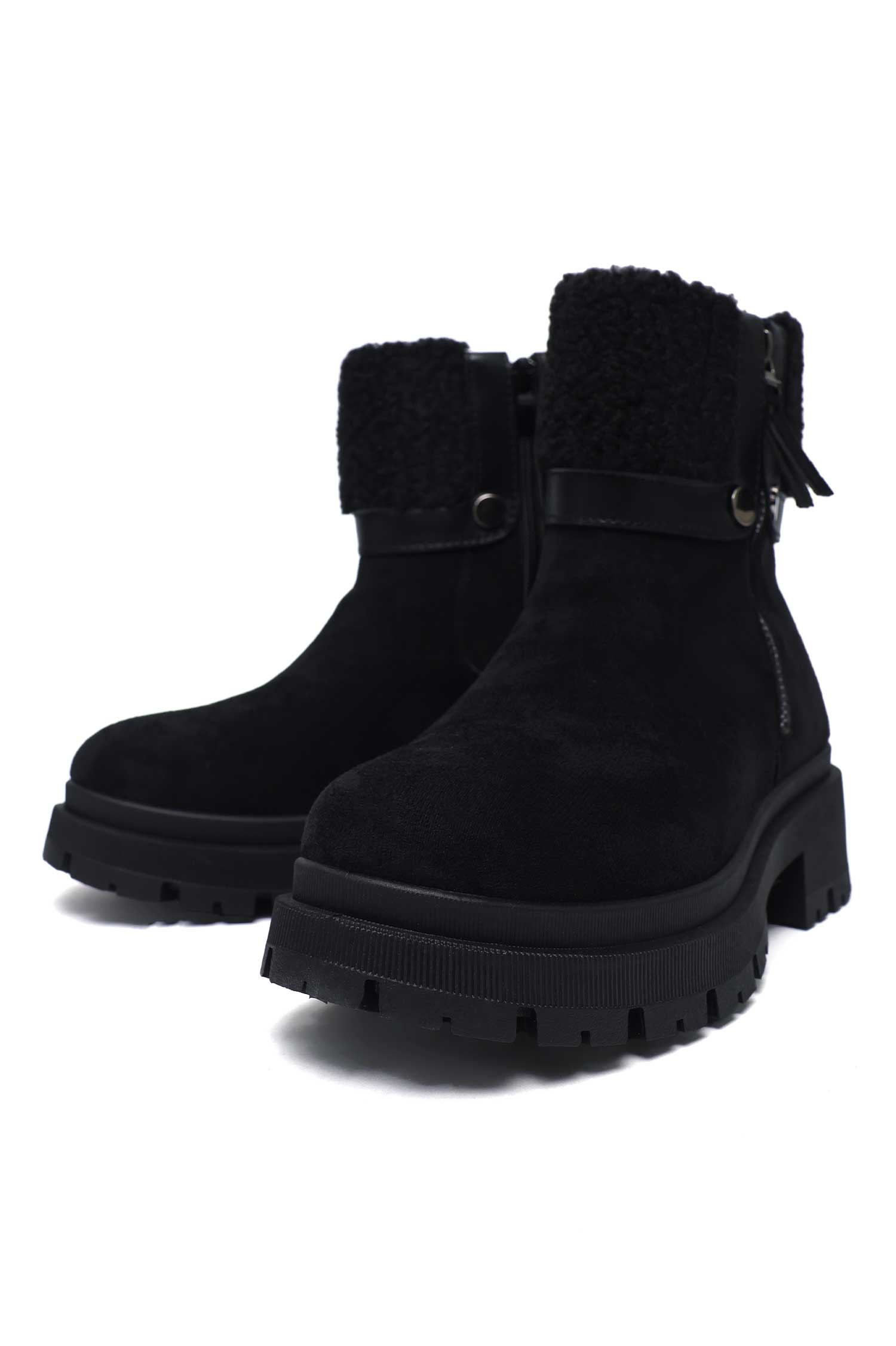 FUR CRUSH ANKLE ZIP BOOT-BLACK