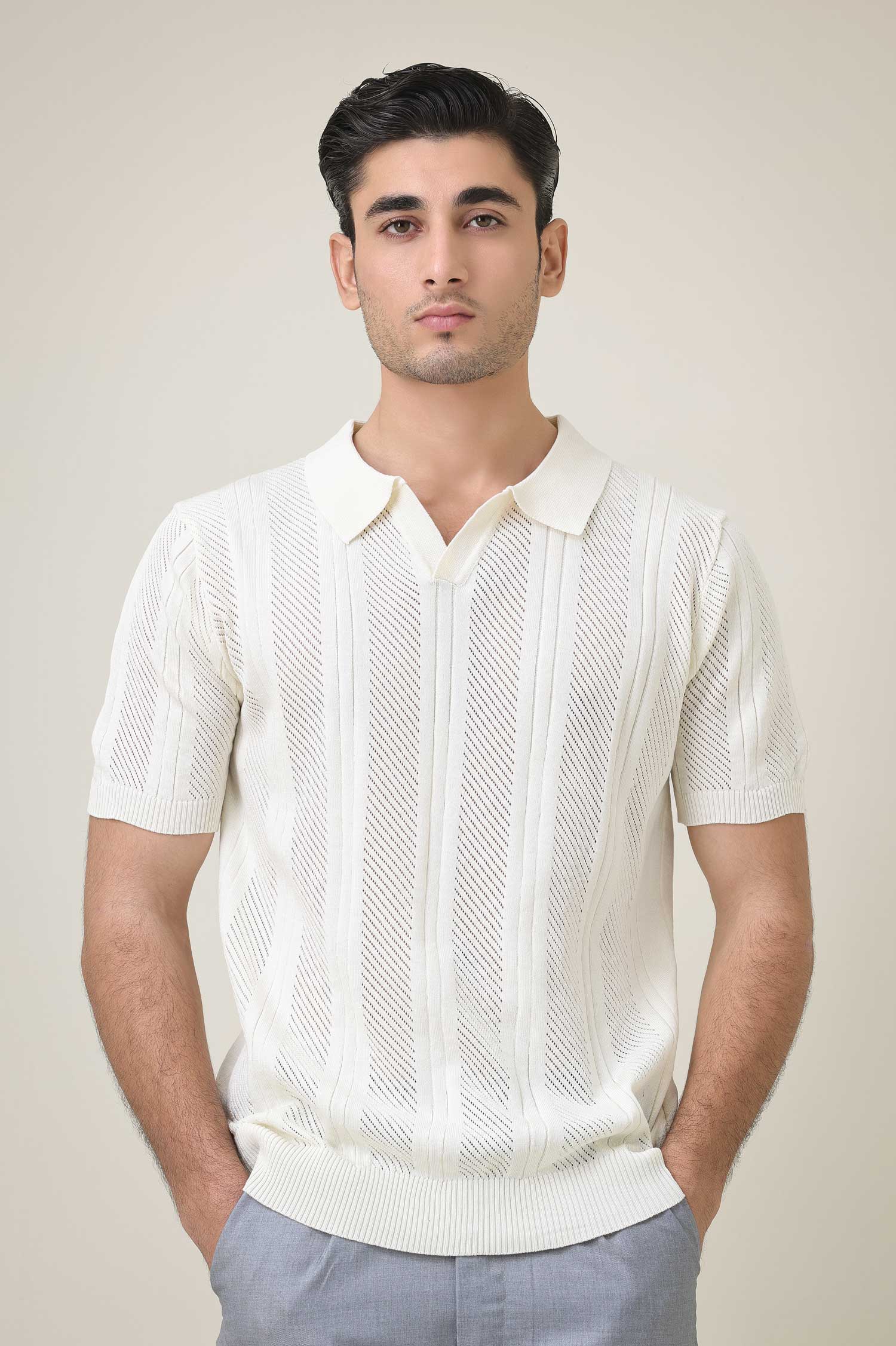 A textured vertical-knit polo, made for easy refinement. Lightweight feel meets structured fit, ideal for desk-to-dinner days. A modern twist on mid-century knitwear style.