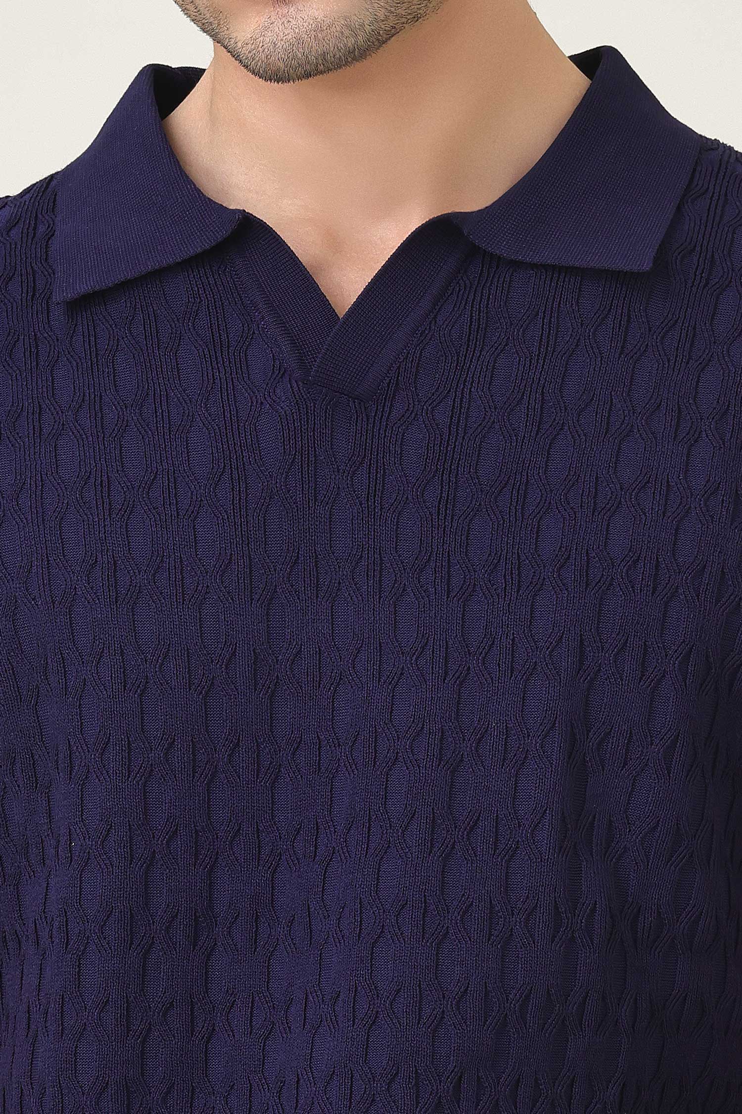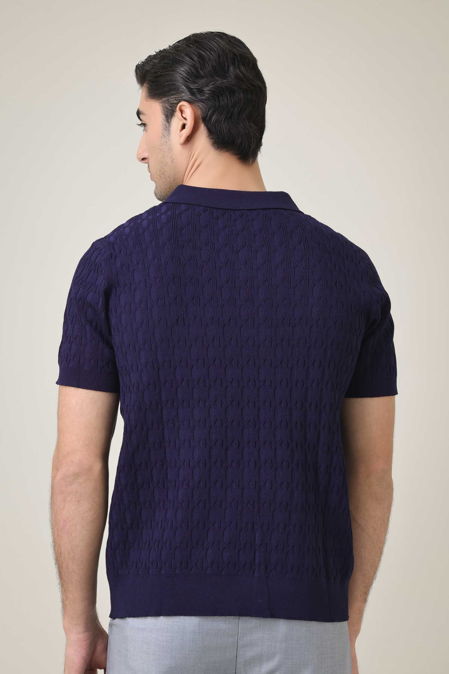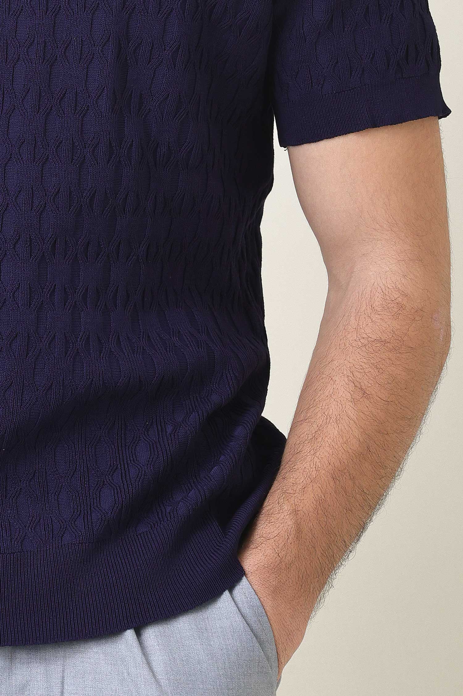 Elevate your everyday with this textured knit polo, designed in a wave-like tactile surface.